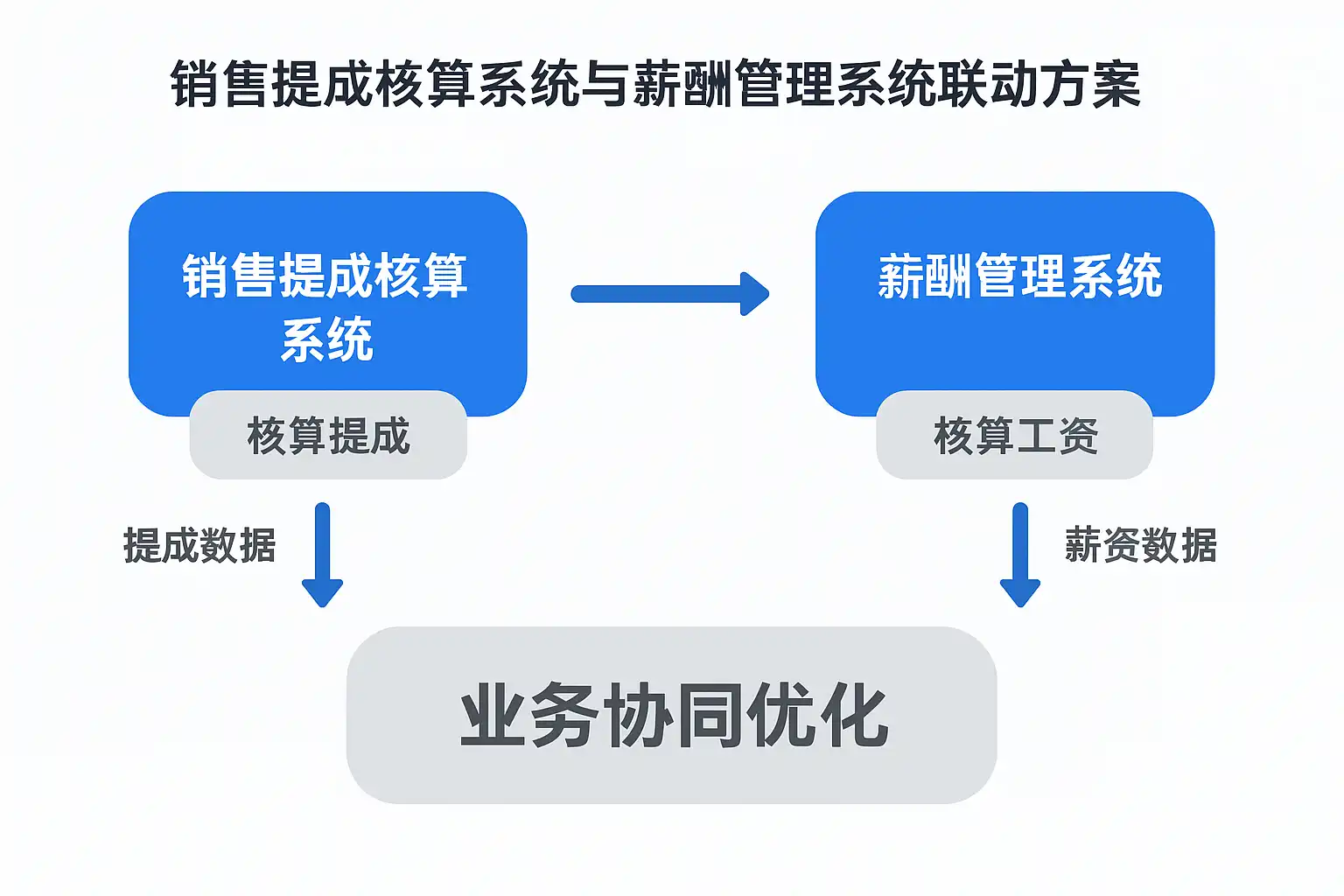 我在想,销售提成核算系统和薪酬管理系统联动的时候,具体应该怎么操作才能实现业务上的协同优化?这两个系统之间的配合有哪些关键点?
