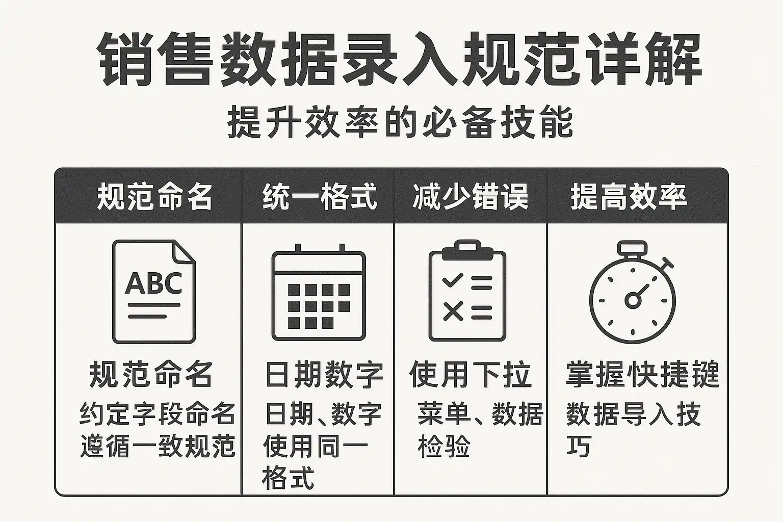 提升销售数据录入效率的必备技能包括: