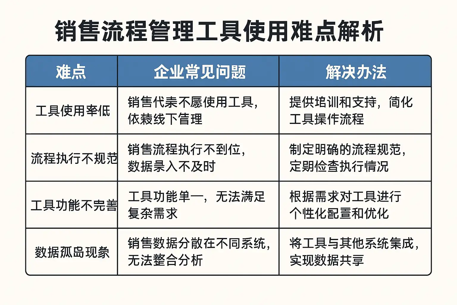 《销售流程管理工具使用难点解析,企业常见问题该如何解决?销售流程管理工具如何高效应对企业挑战?》