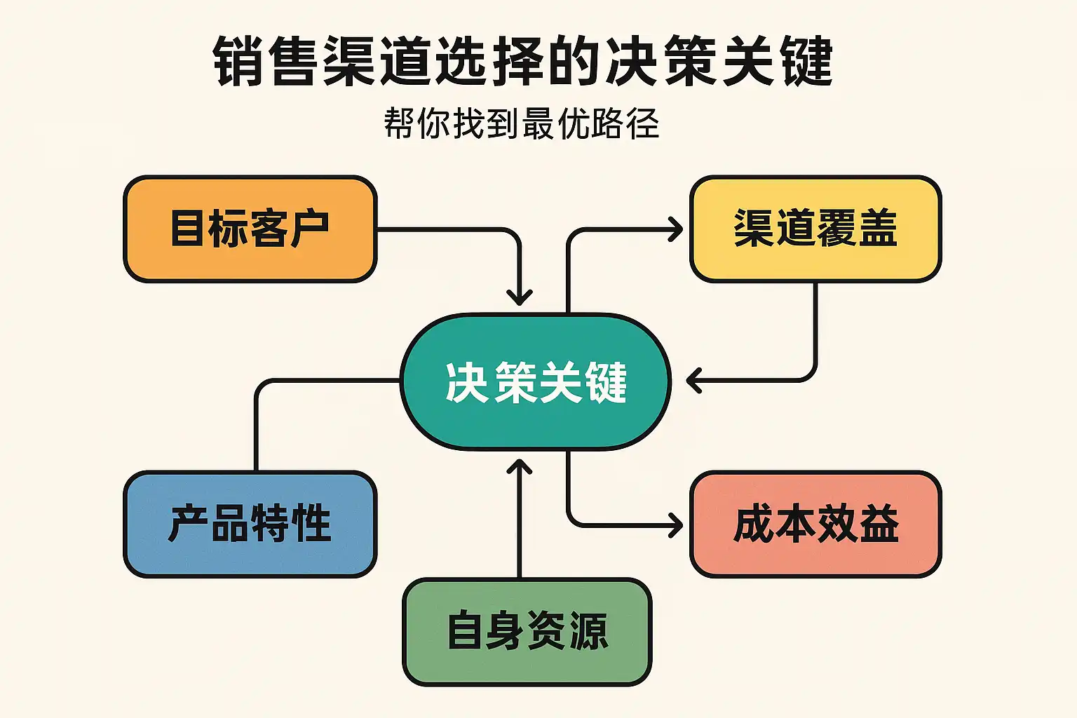 我在选择销售渠道时总是感到困惑,不知道哪些因素是决策时最重要的关键点。比如,渠道成本、覆盖率、客户匹配度等因素具体该如何权衡?