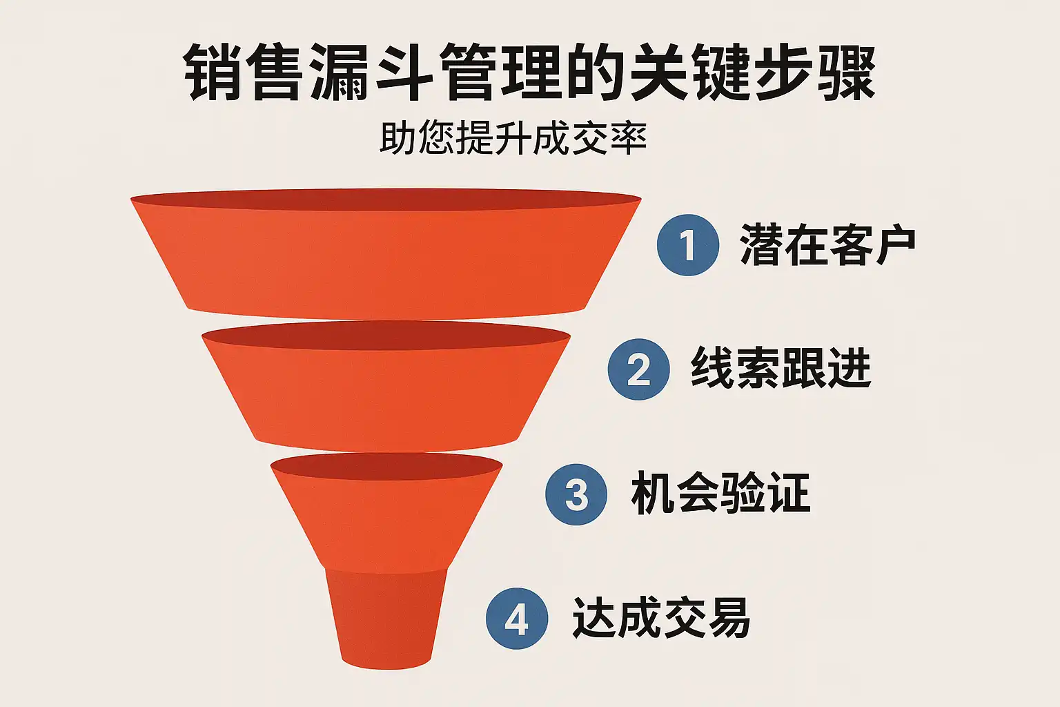要提升成交率,关键是把销售漏斗做成一套“标准化阶段定义+SLA推进+数据诊断+自动化落地”的闭环体系,再辅以教练式管理沉淀最佳实践。建议本周即可行动: