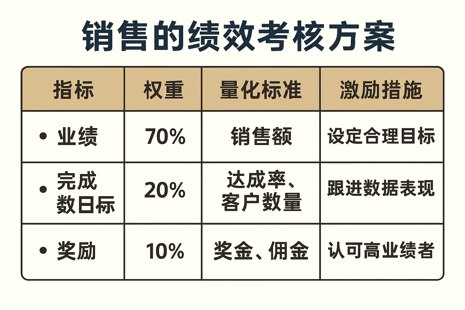 推荐采用“结果50%+过程30%+质量/风控10%+能力10%”的综合评分法,既保留对结果的强激励,又避免短期透支。