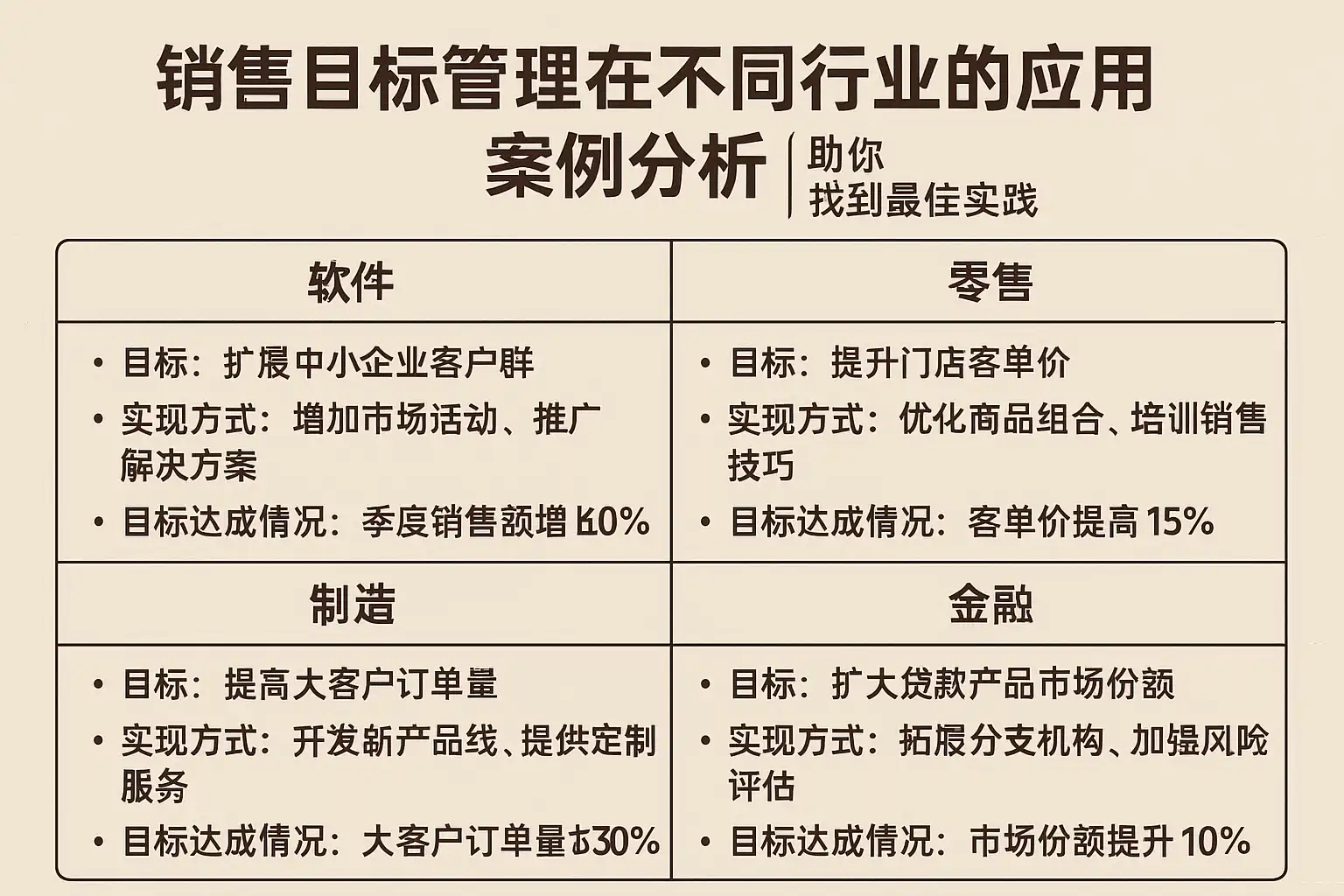 我在工作中经常听到销售目标管理的重要性,但具体应用案例如何帮助不同行业实现最佳实践?我想了解这些案例背后的实际效果和操作方法。