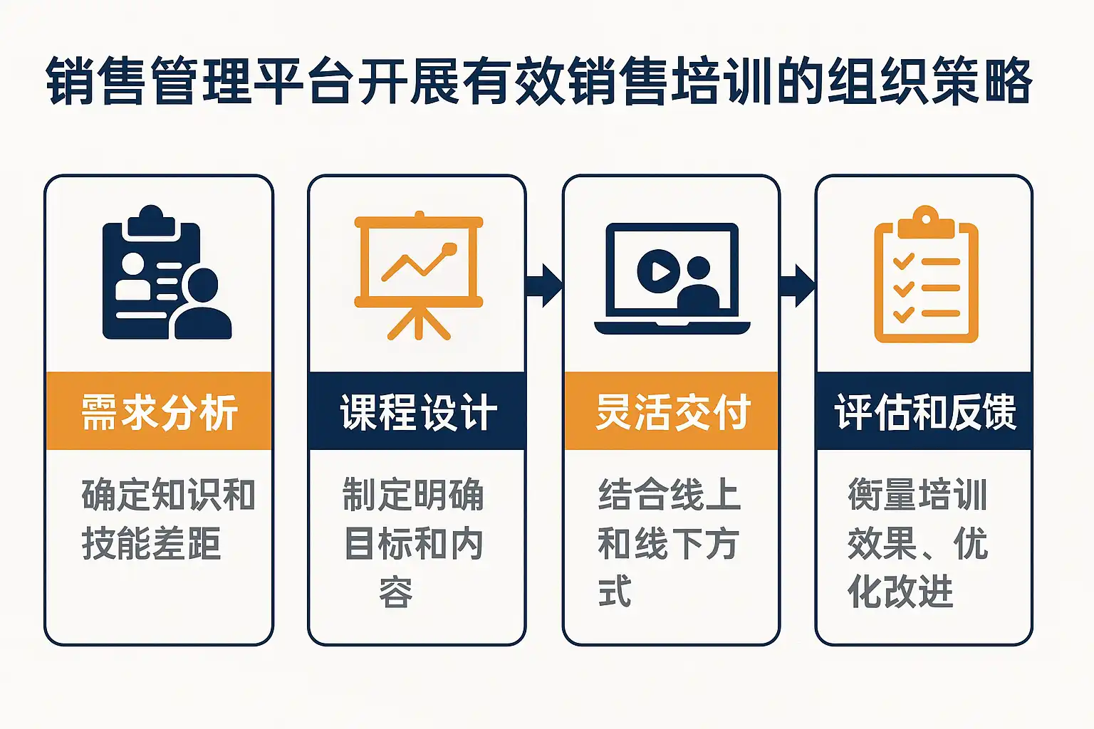 - 高效销售培训的本质是“以结果为导向的组织级行为改变”。围绕关键成交场景构建混合式训练,通过经理教练与过程数据约束,确保“学到—做到—拿到”。借助可配置的工具,把培训流程与商机管理深度耦合,才能让培训持续产生业绩复利。