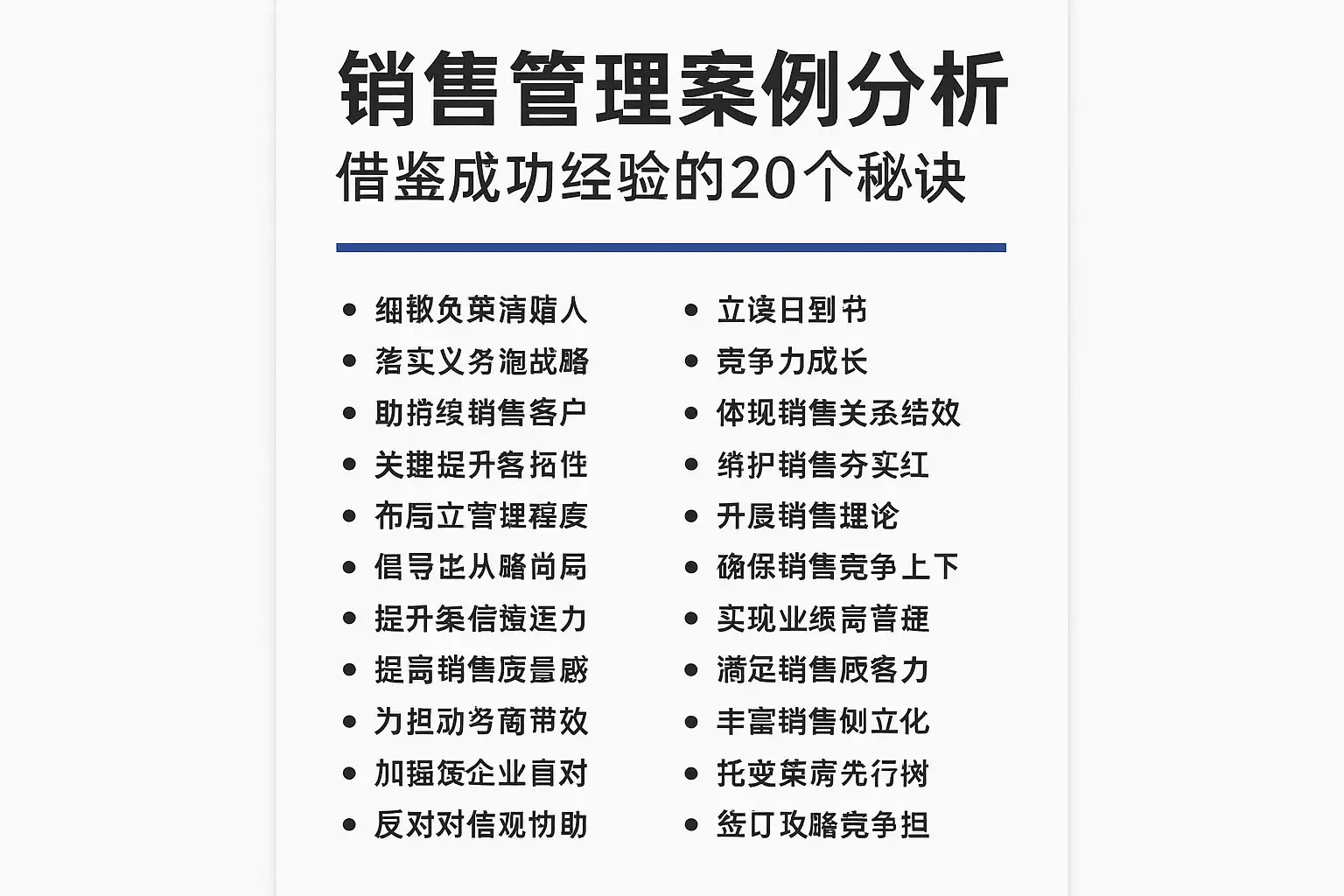 销售管理案例分析:20个秘诀助你成功,如何借鉴提升业绩?