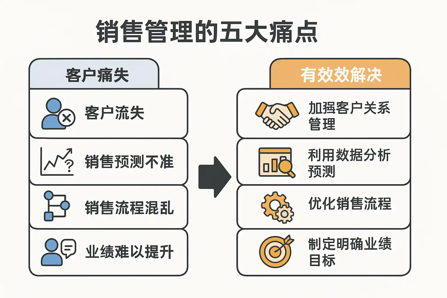 销售管理中的常见痛点主要包括: