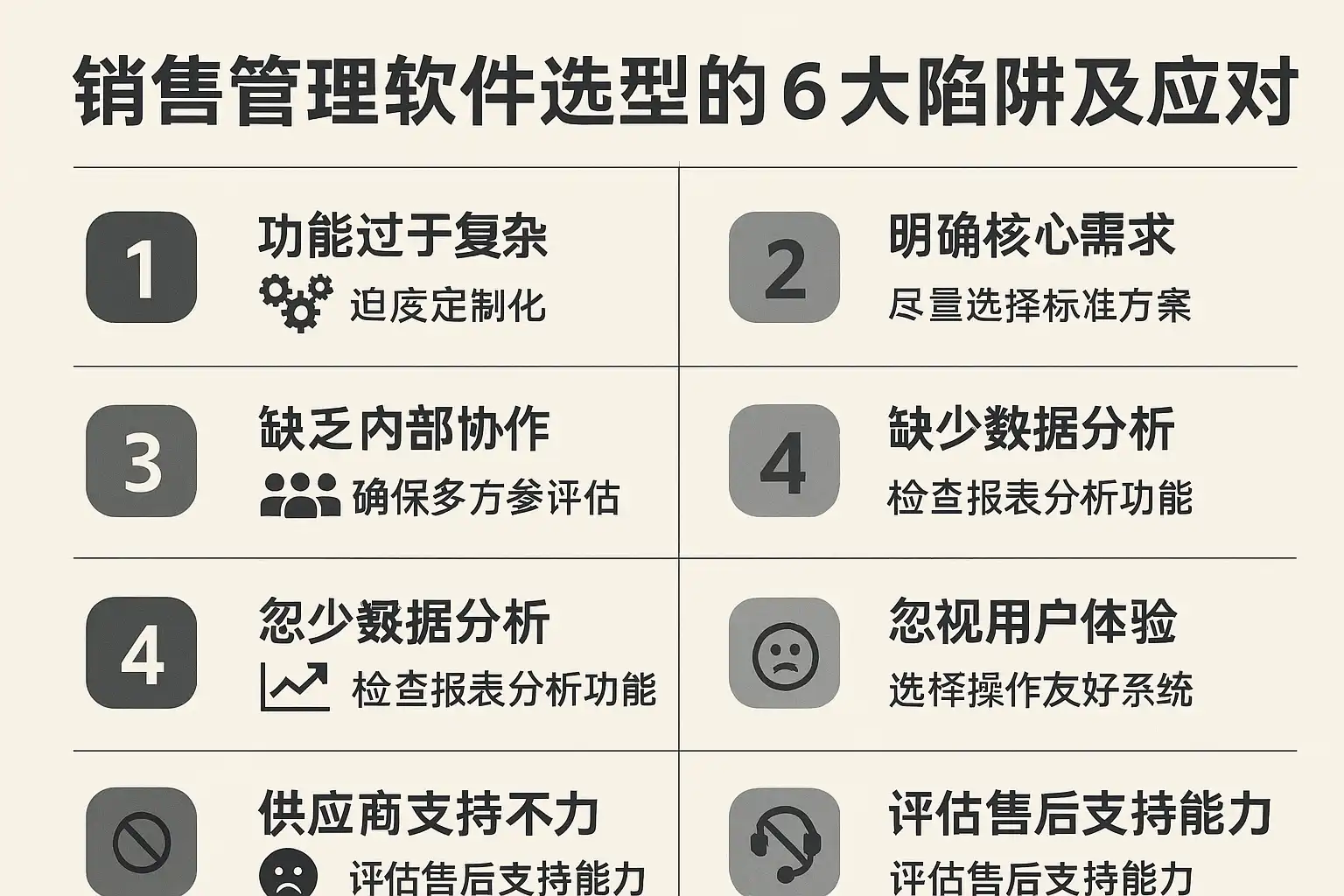 我在挑选销售管理软件时总感觉信息太多,难以分辨哪些陷阱是真正要注意的。有哪些选型陷阱是经常被忽视但却影响决策的?