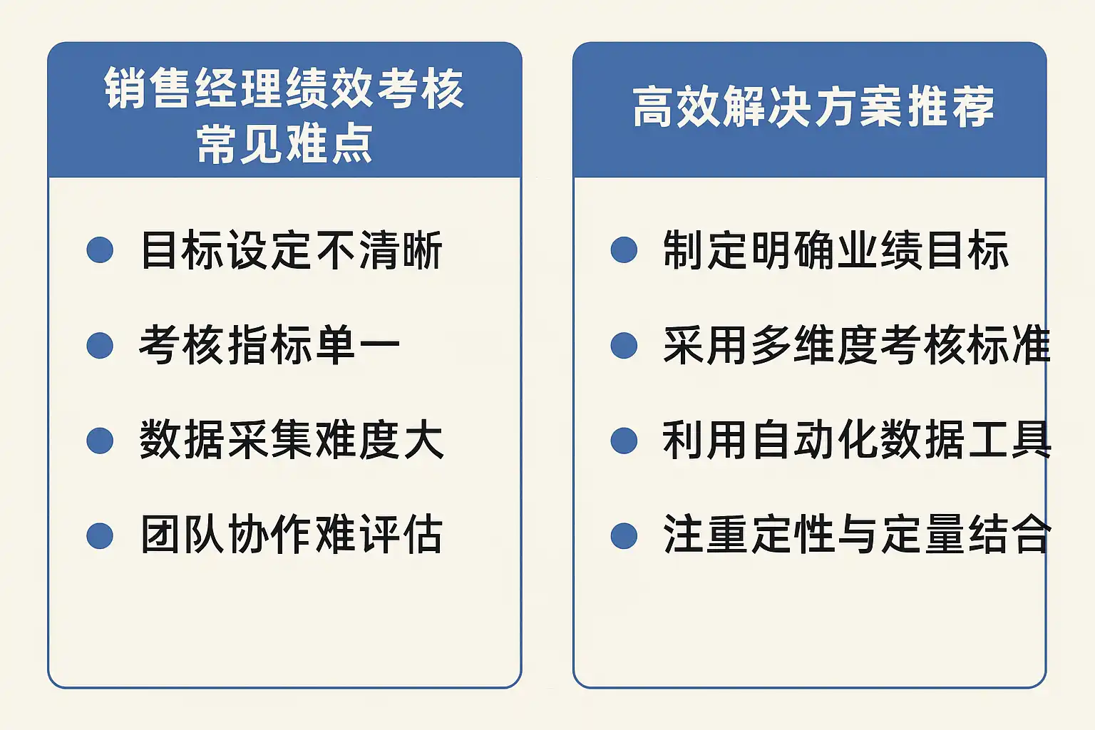 针对销售经理绩效考核的难点,推荐以下高效解决方案: