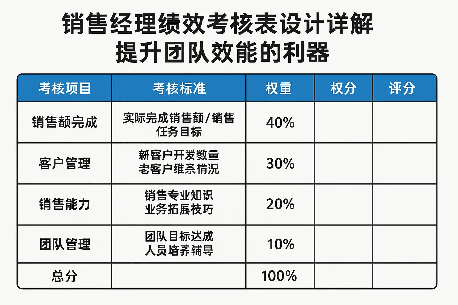 销售经理绩效考核表设计详解,如何提升团队效能?销售经理绩效考核表如何助力团队成长?