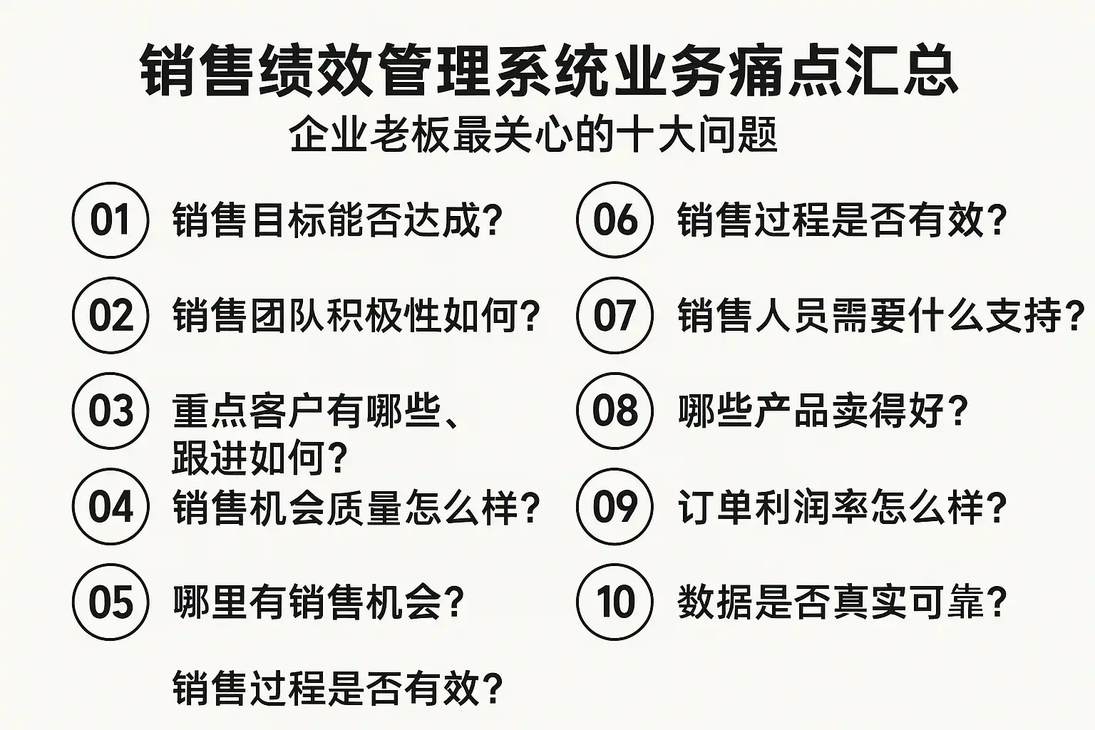 《销售绩效管理系统痛点解析,企业老板最关心的十大问题有哪些?》