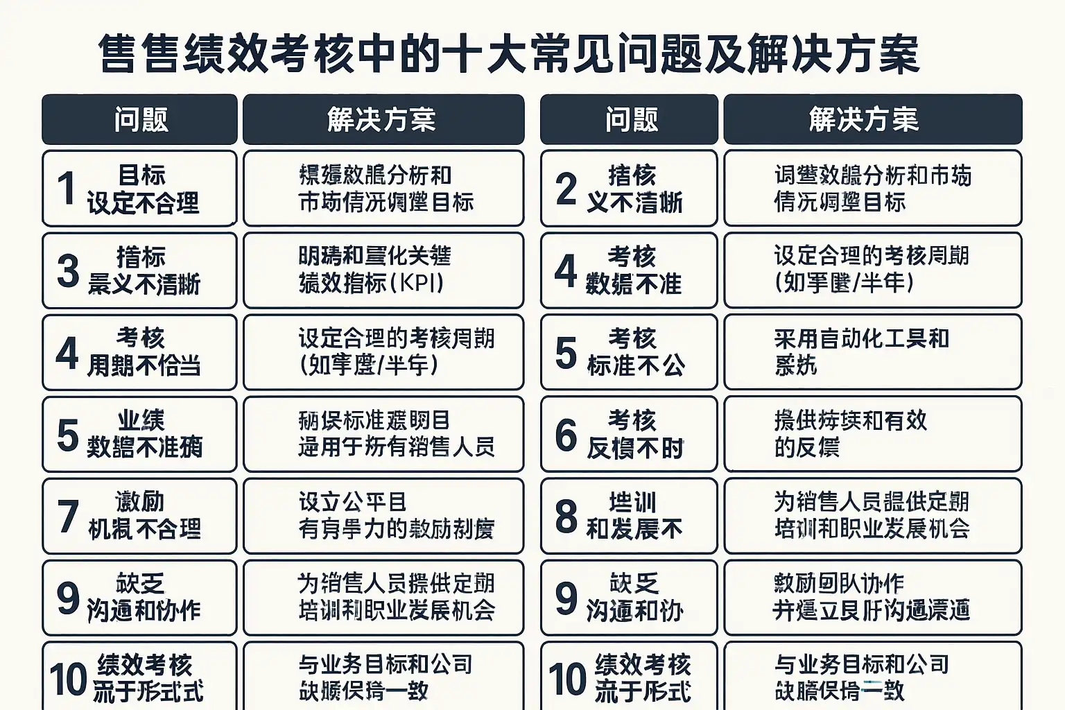 - 考核周期过长,缺乏实时反馈,难以及时调整销售策略。