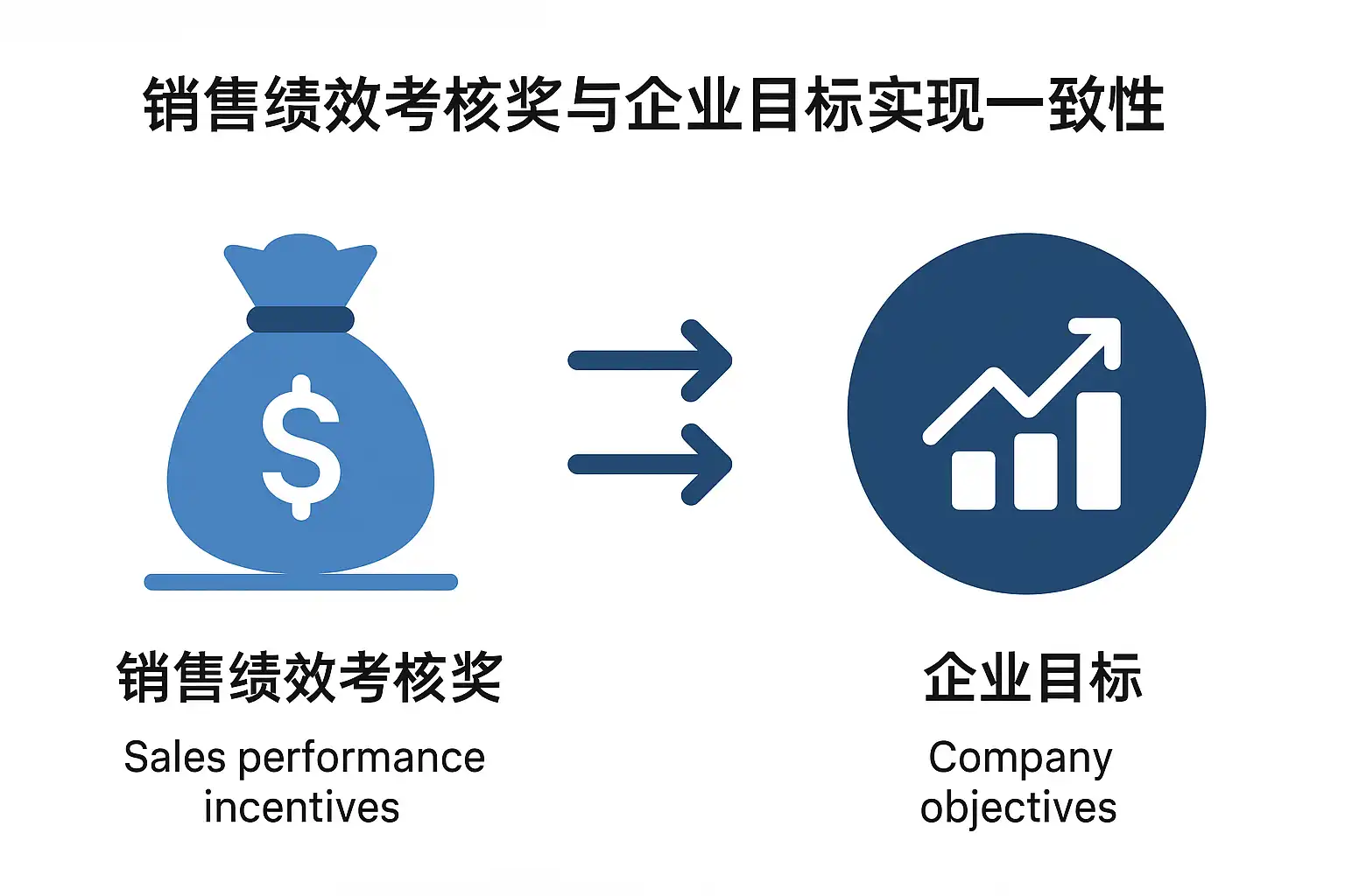 要做到一致性,先明确企业目标(战略层),再映射到销售端的指标(战术层),最后落实到奖金规则(执行层)。