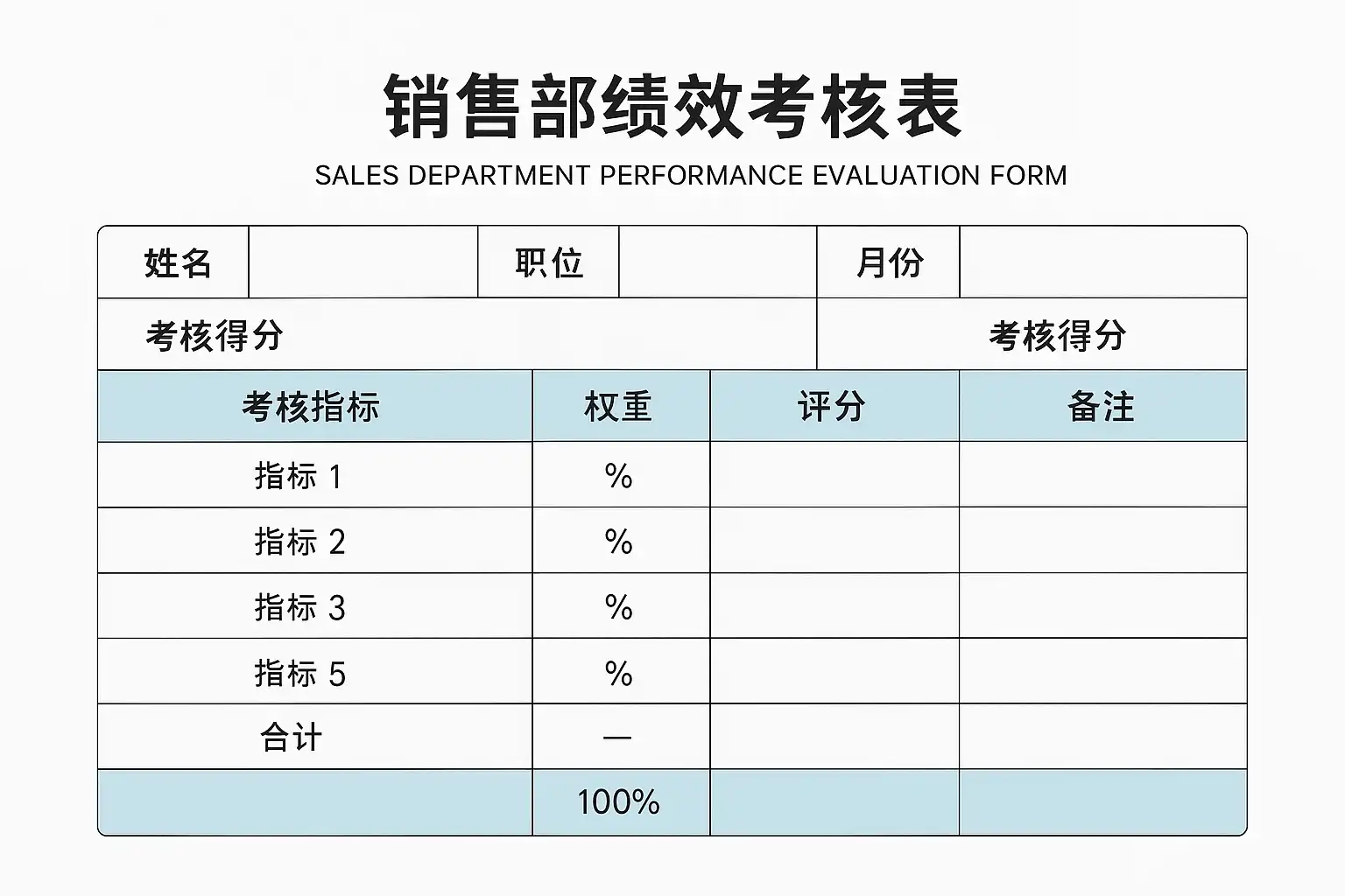 一、标准版销售部绩效考核表模板(可复制使用)