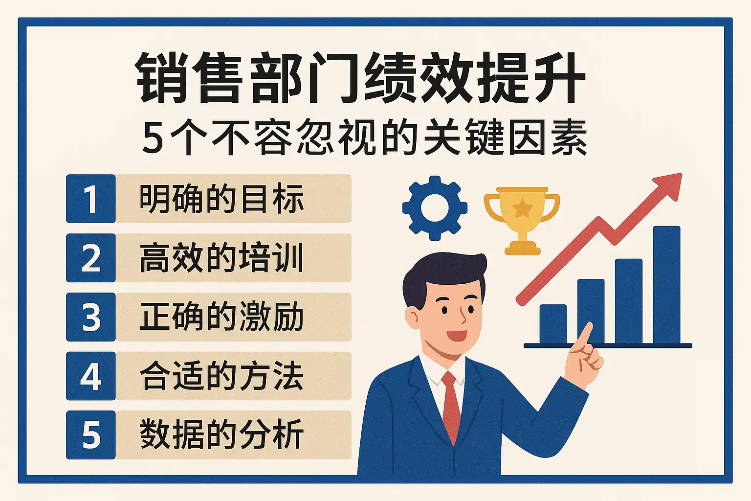 销售部门绩效提升的关键因素主要包括目标设定、团队培训、数据驱动管理、激励机制和客户关系维护。具体来看: