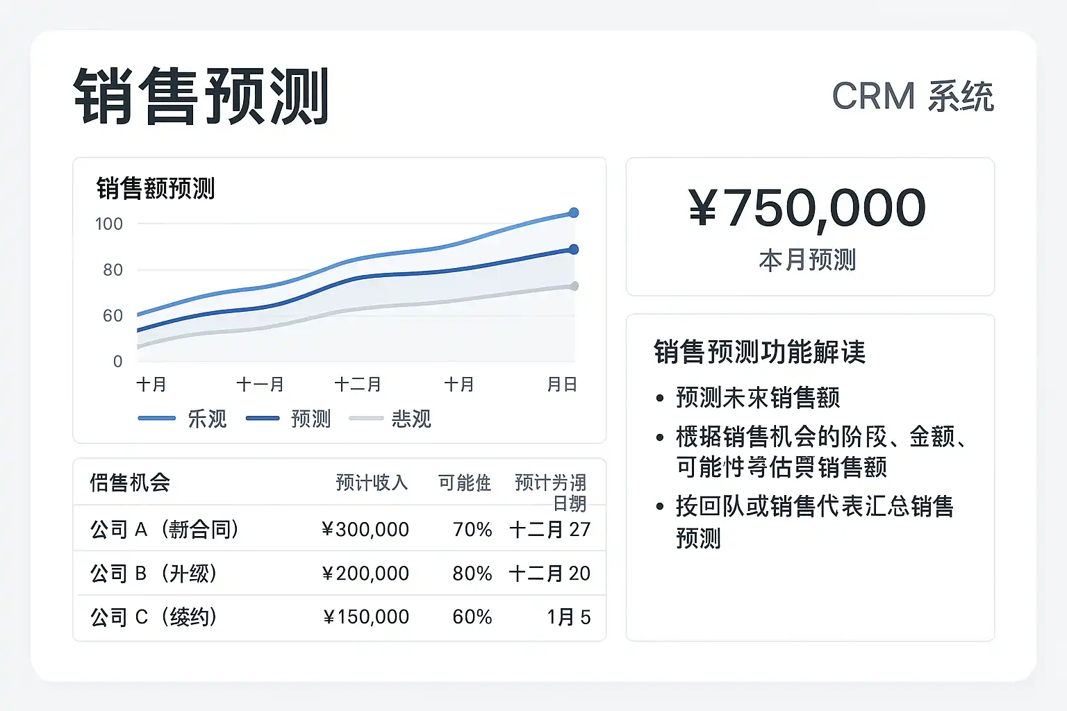 | 商机 | 金额、阶段、预计成交日、赢率 | 预测的核心输入 |