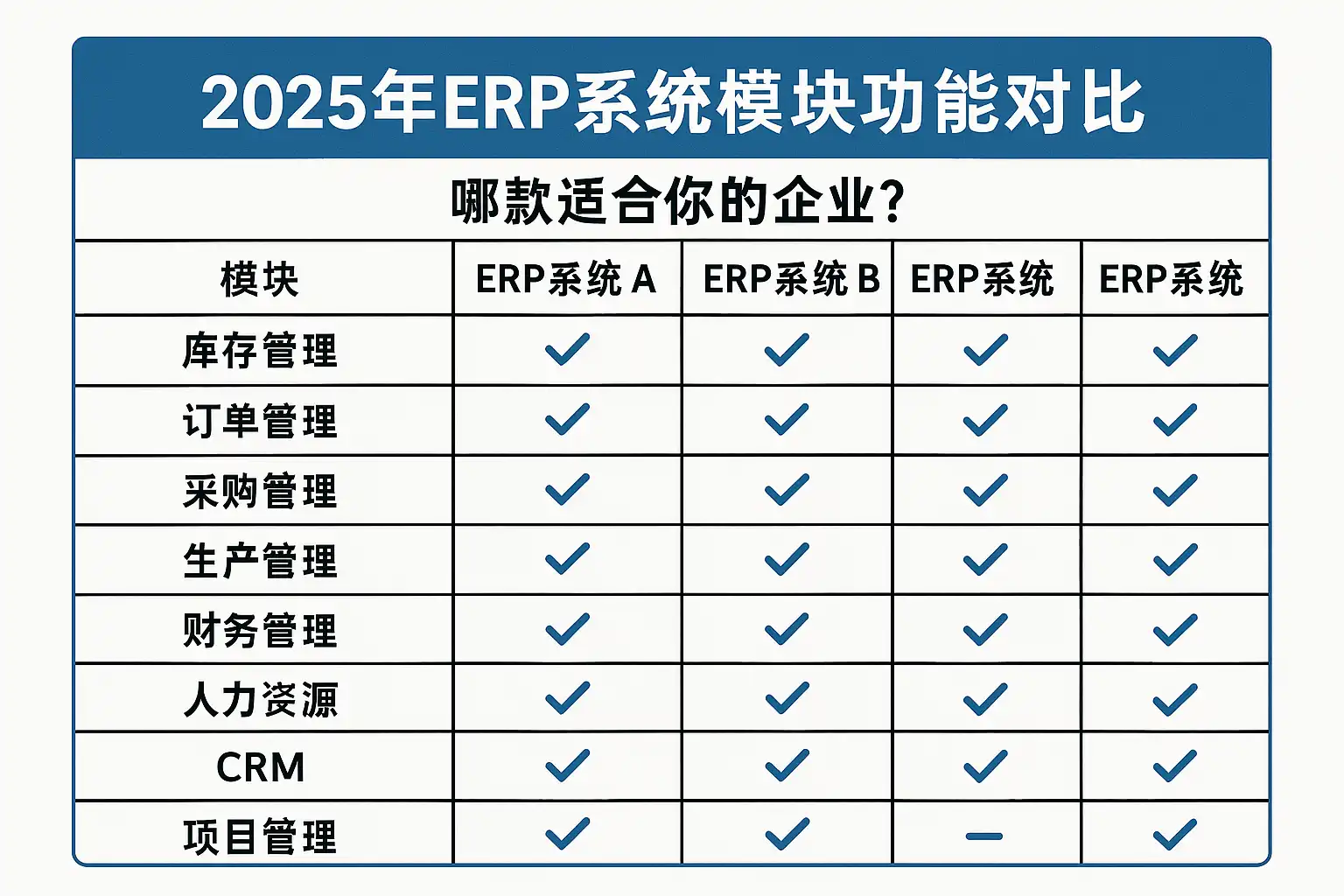 ERP系统模块功能对比2025,哪款最适合你的企业?ERP系统选择指南,如何找到最佳解决方案?