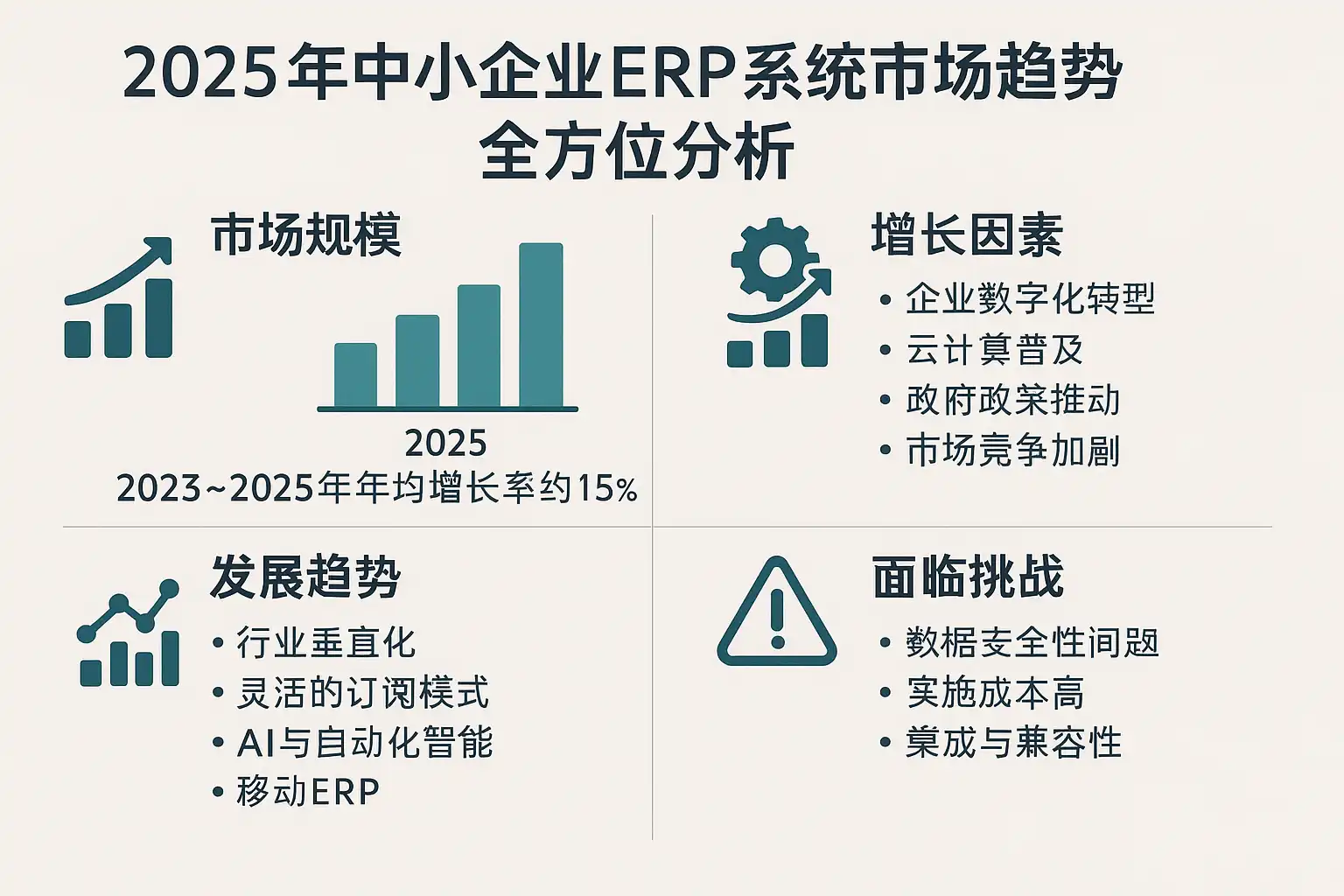 我看到很多关于中小企业ERP系统的报道,但具体2025年市场趋势到底有哪些关键变化?我想了解未来几年内ERP系统的发展方向和市场动态,方便企业做出合理的规划。