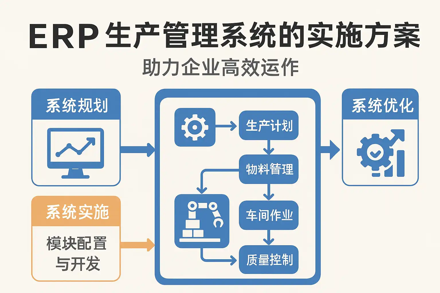 我想了解ERP生产管理系统实施方案具体包含哪些核心步骤?作为企业管理者,我担心方案执行不到位会影响生产效率,想知道有哪些关键环节必须重点关注。