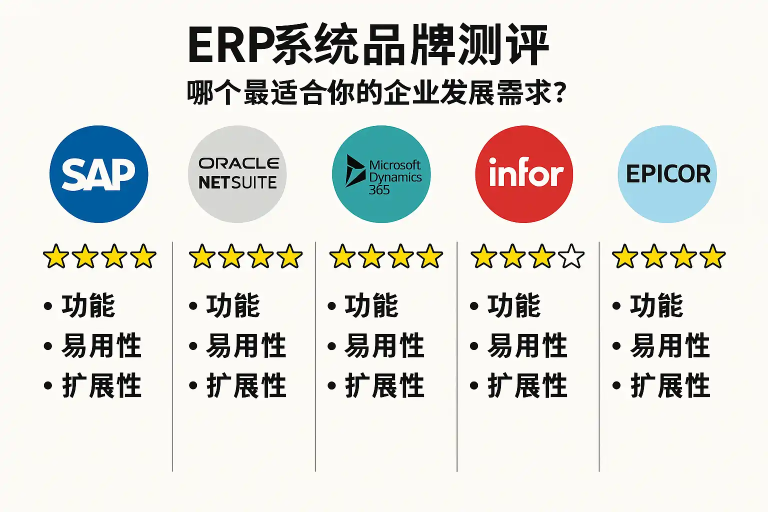 - 推荐:Oracle NetSuite、Microsoft D365