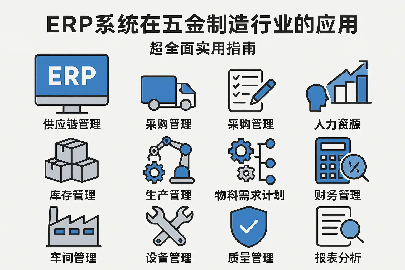 要在五金制造用ERP提效,先抓计划与主数据,再打通车间执行与质量闭环,以标准成本驱动持续改善。建议行动清单: