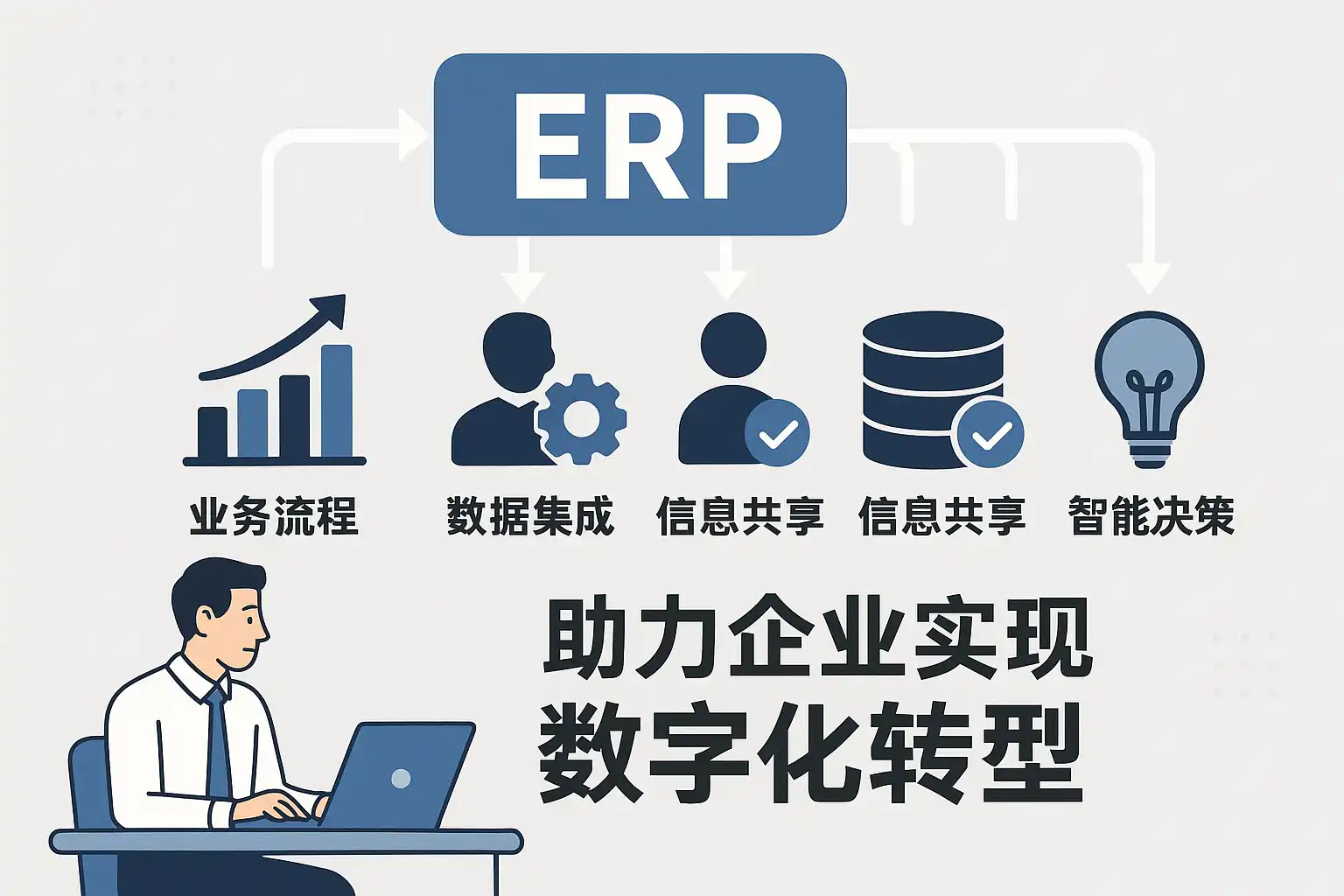 ERP系统通过整合企业各部门的数据,实现业务流程自动化和信息共享,从而提升管理效率。具体表现为: