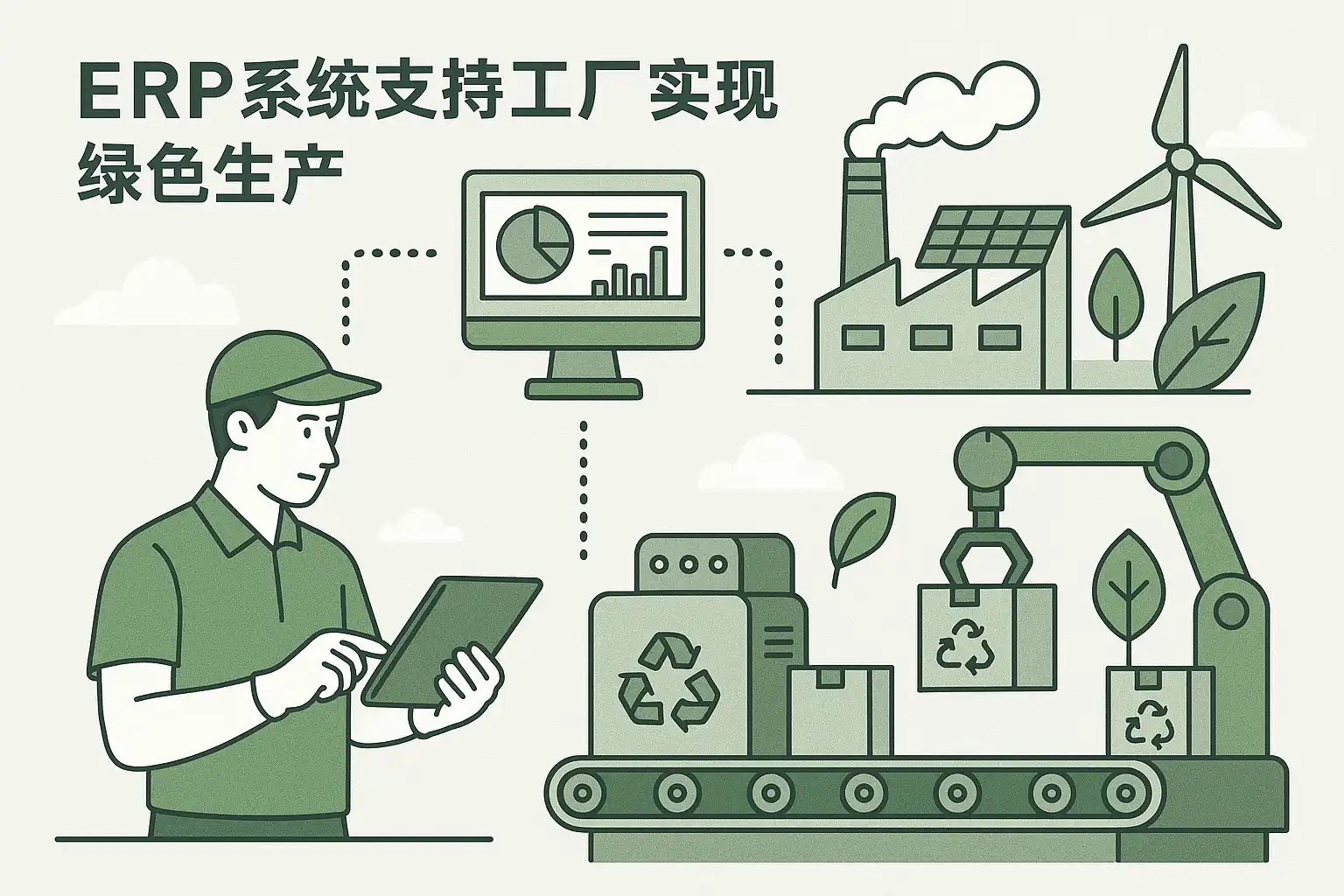 ERP系统通过集成资源规划与环境管理功能,助力绿色生产工厂实现环保与效率双赢。具体措施包括: