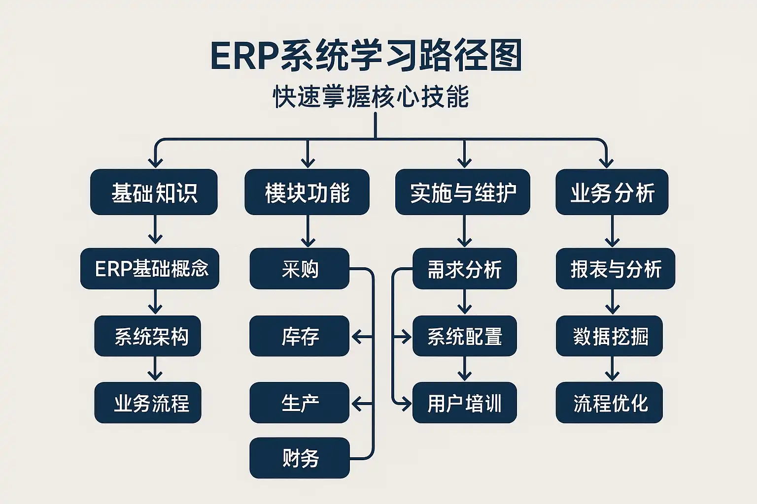 ERP系统学习路径图中,哪些核心技能最重要?