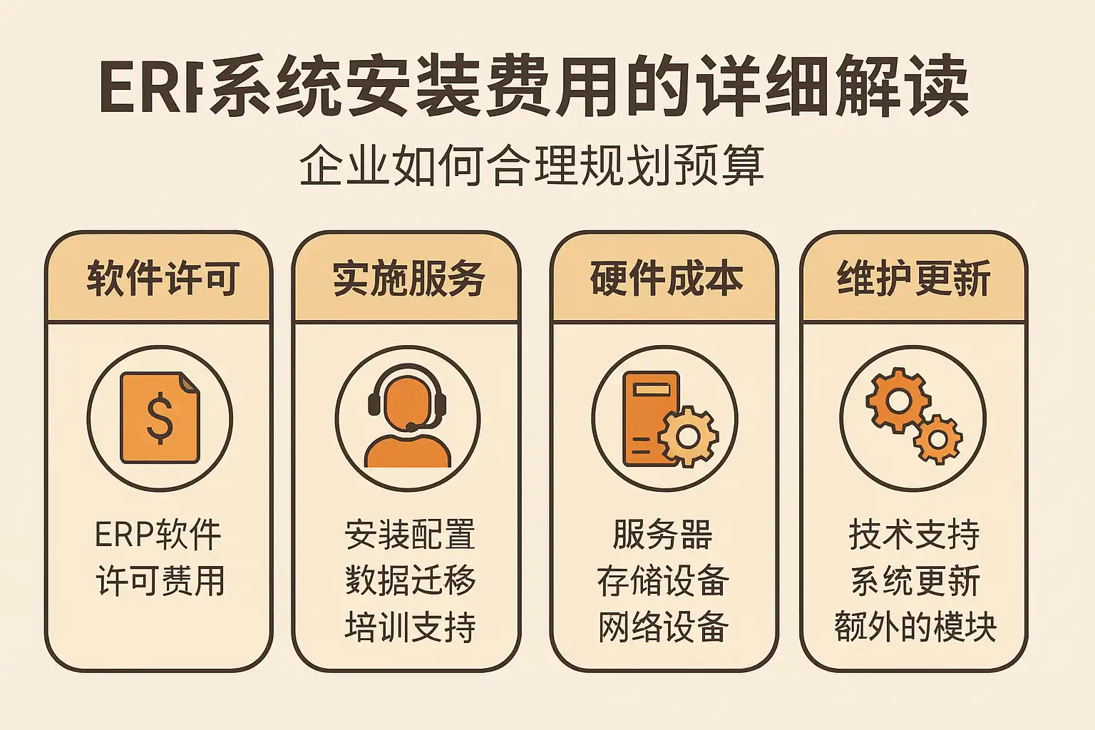 我在考虑部署ERP系统,但不清楚安装费用具体包含哪些内容。能否详细说明ERP系统安装费用的主要组成部分,帮助我更好地预算?
