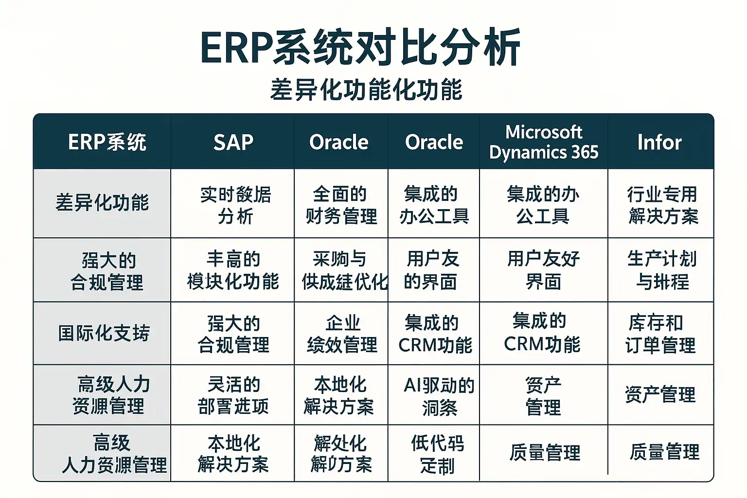 ERP系统对比分析,品牌差异化功能有哪些优势?ERP系统选哪款更适合企业?