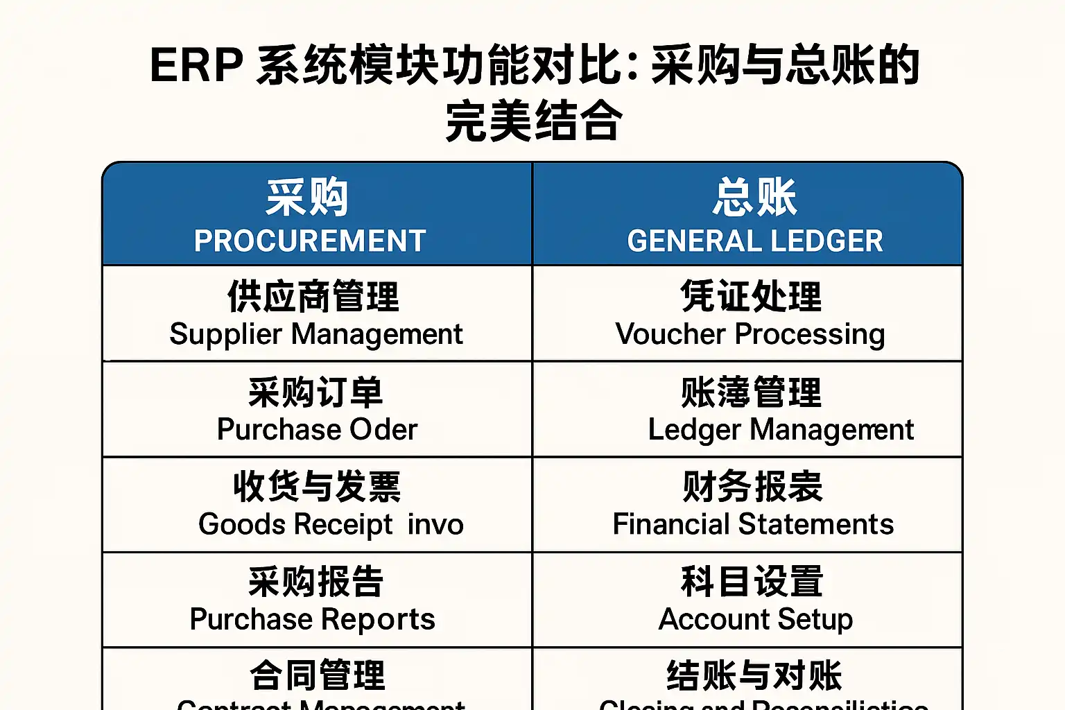 ERP系统模块功能对比,采购与总账如何完美结合?