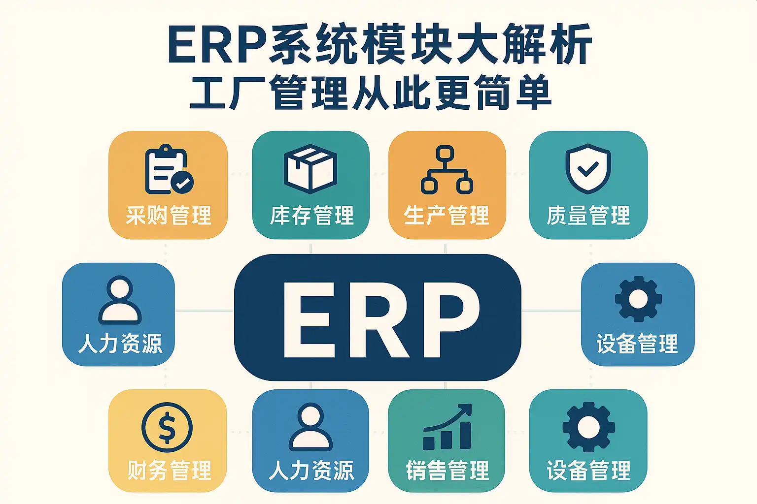 以下为工厂常见ERP模块的结构化解读及其管理作用,覆盖计划、采购、生产、库存、质量、设备、财务与分析等关键环节,并指出各模块在简化管理中的具体贡献。