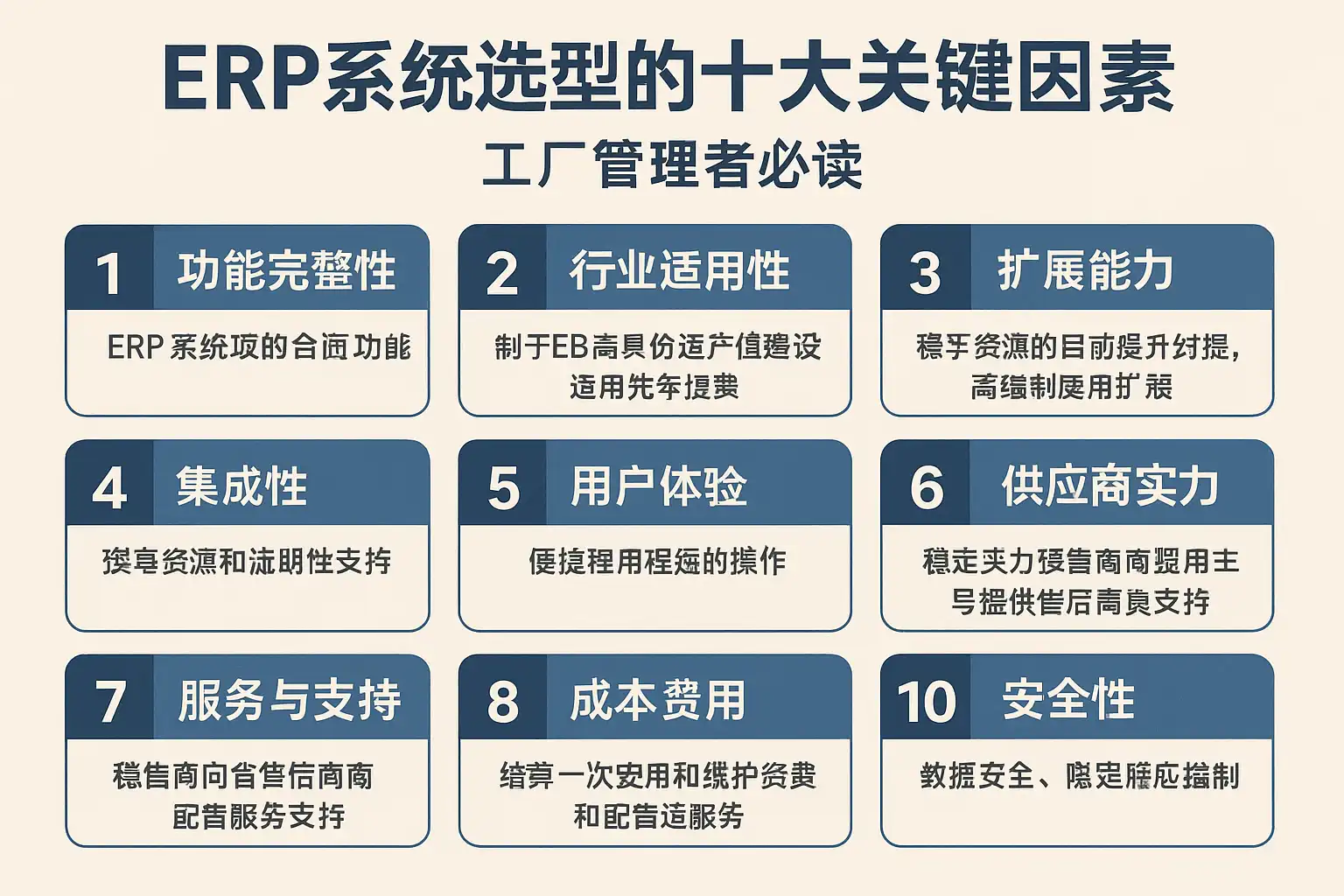 ERP系统选型十大关键因素解析,工厂管理者如何选择最佳方案?