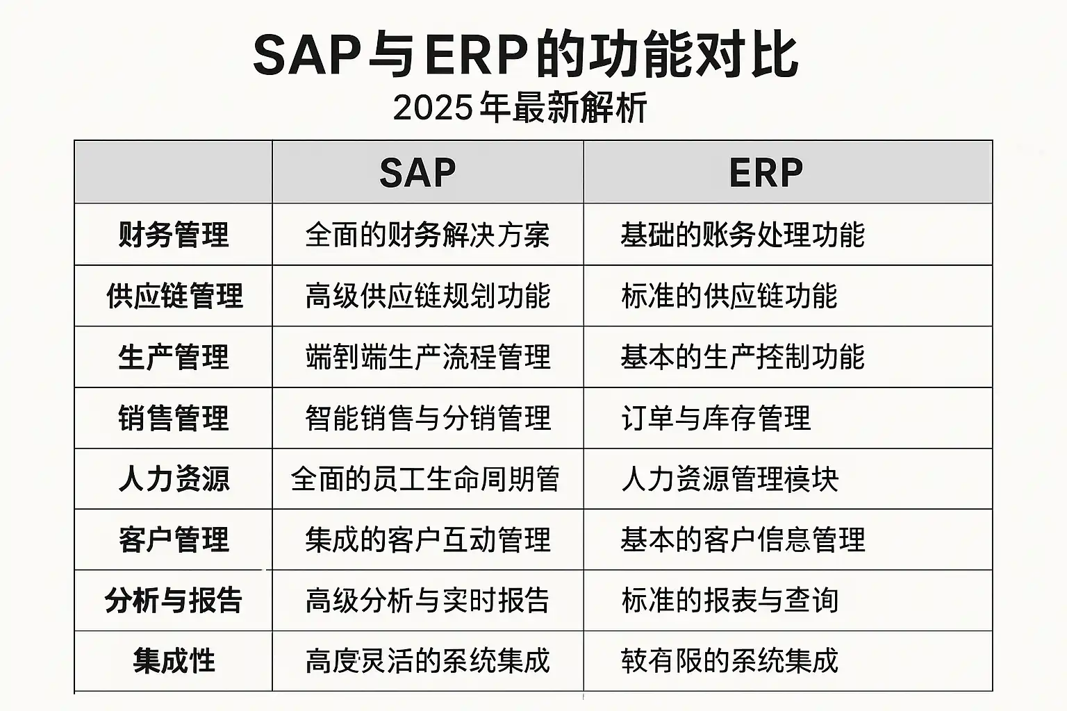 《SAP与ERP功能对比详解,2025年最新解析,哪个更适合你?》