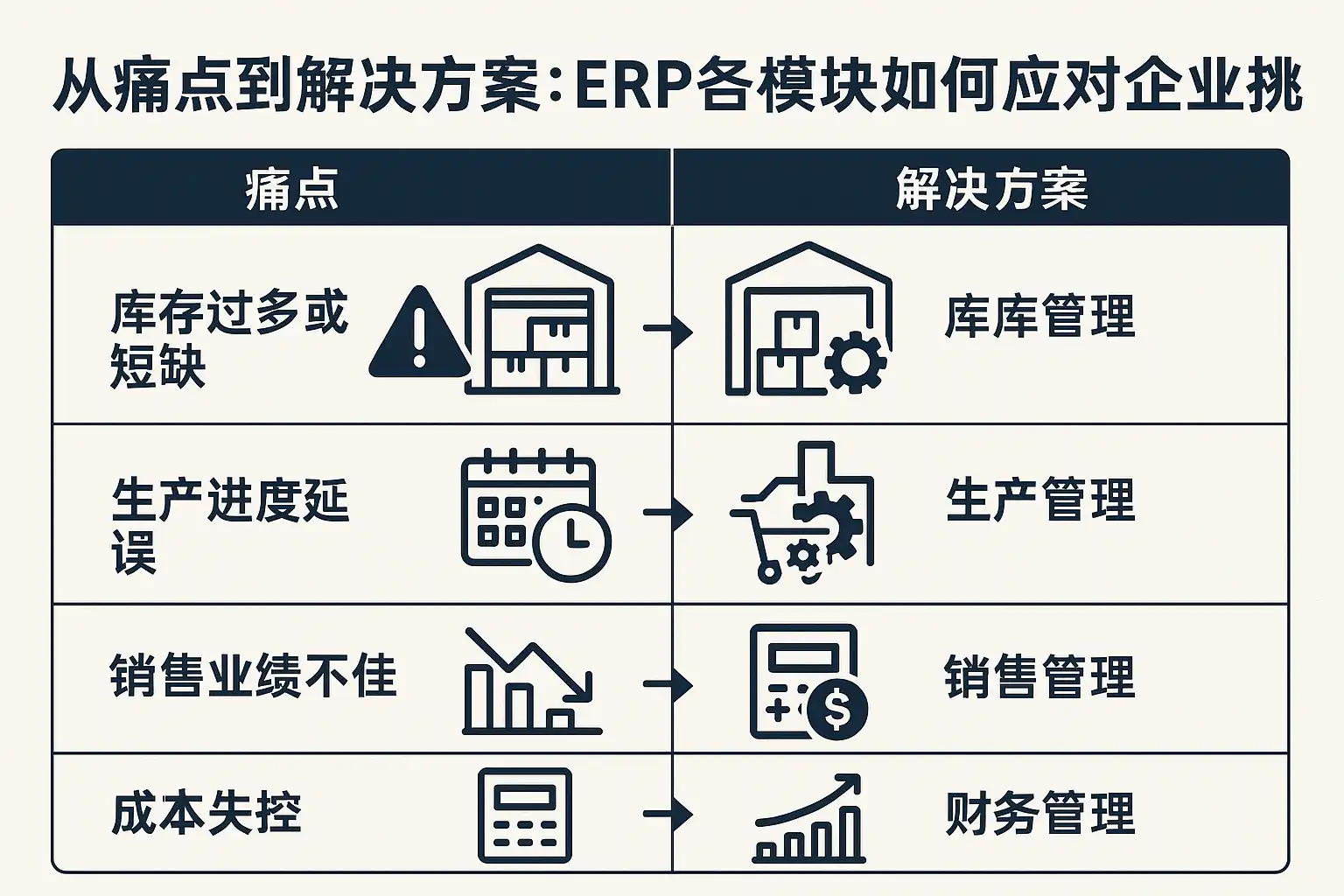 ERP各模块应对企业挑战,如何解决痛点?企业挑战下ERP解决方案有哪些?