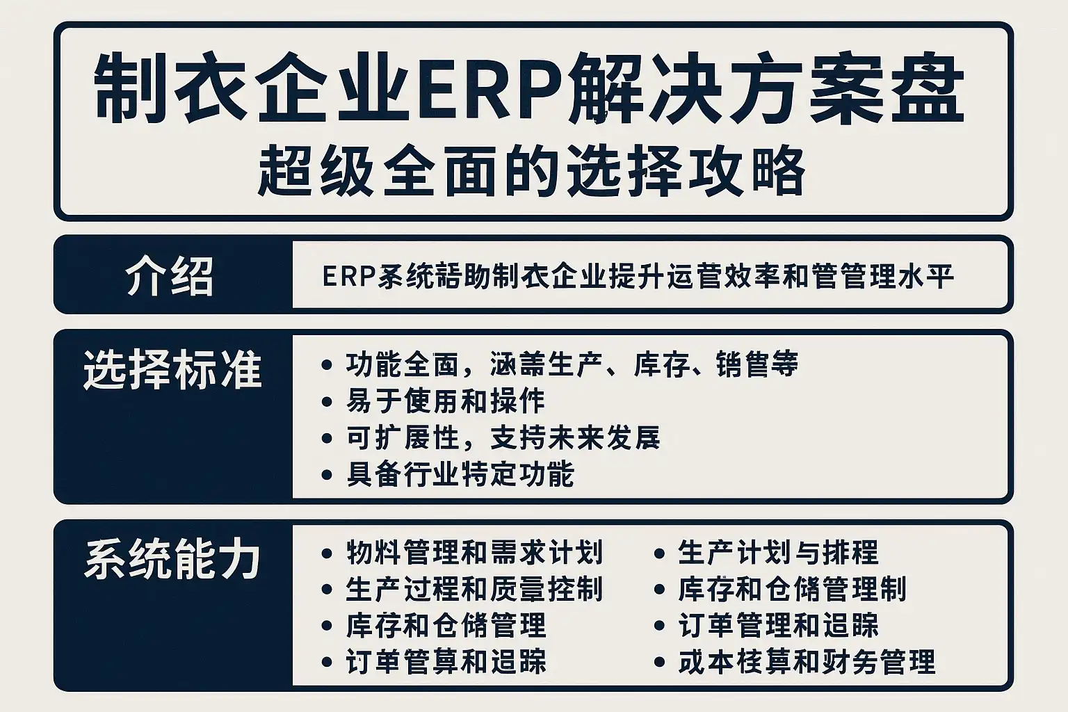 《制衣企业ERP解决方案盘点,哪款系统最适合你?超级全面的选择攻略,如何快速选出最佳方案?》