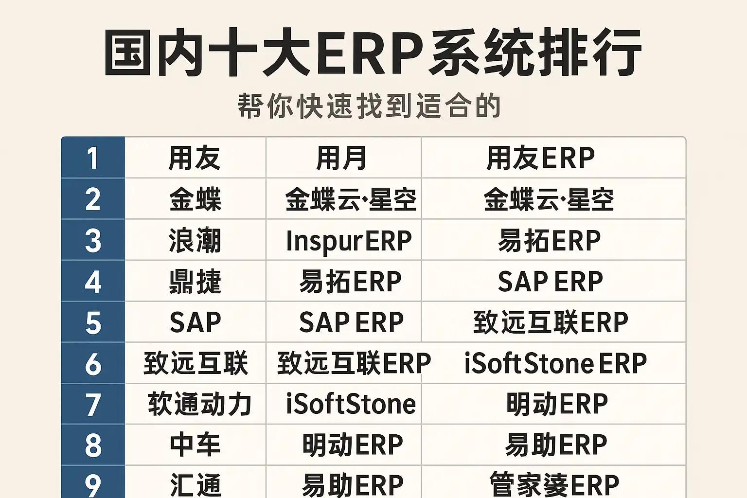 《国内十大ERP系统排行,哪个最适合你?快速找到理想ERP方案!》