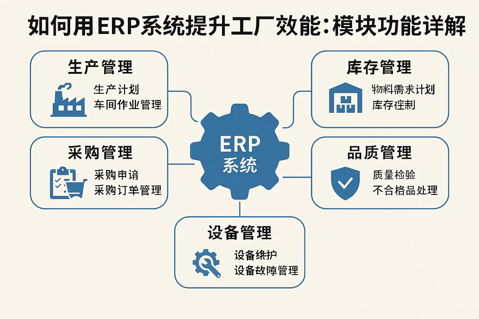 我在考虑引入ERP系统来优化工厂管理,但不太清楚具体哪些模块功能能直接提升生产效率。想了解ERP系统各个模块是如何协同工作,从而提升工厂效能的。