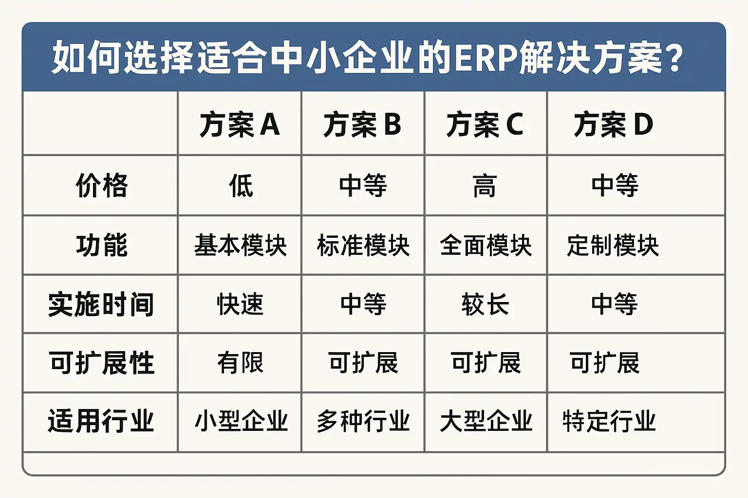 选择中小企业ERP解决方案时,应重点考虑以下几个关键因素:
