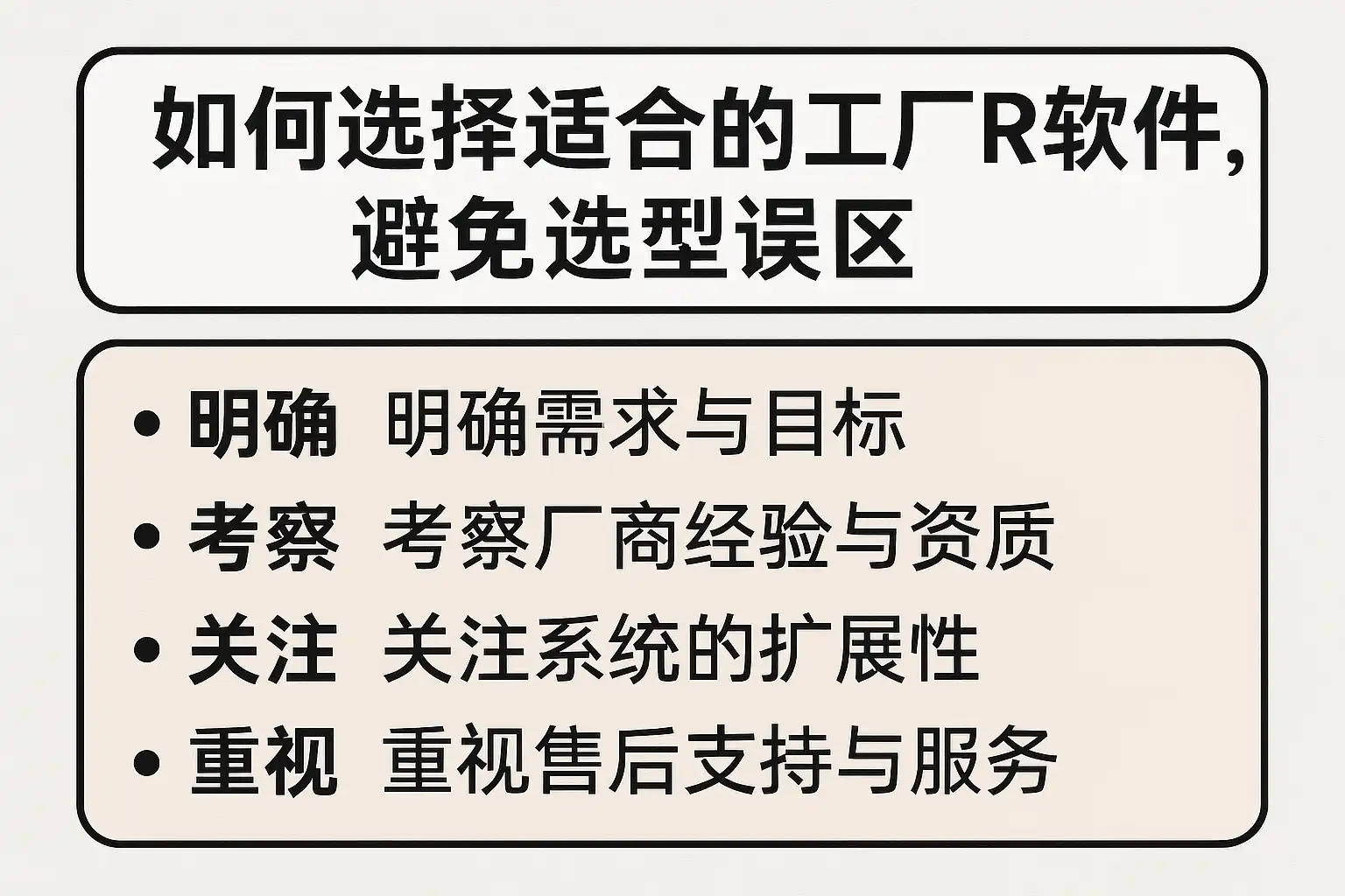 | 忽视实施团队 | 项目延期、质量差 | 要行业案例、核心顾问履历与到岗承诺 |
