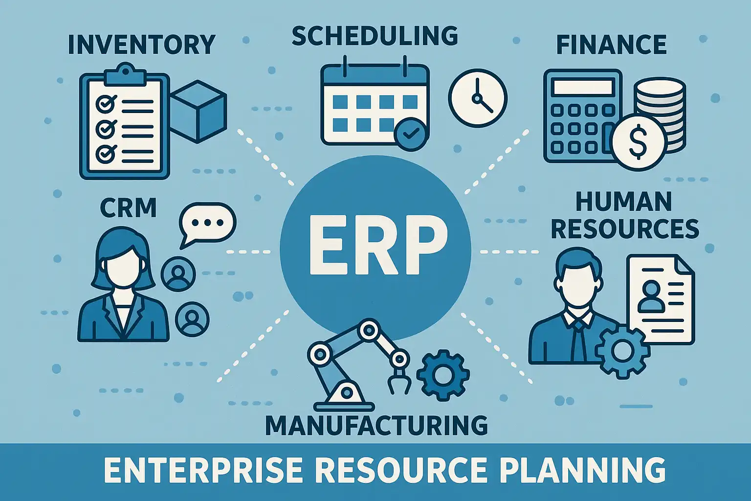 | 财务 | 账务、成本、结算 | 业务过账 | 科目、税率 | 报表与现金流 |
