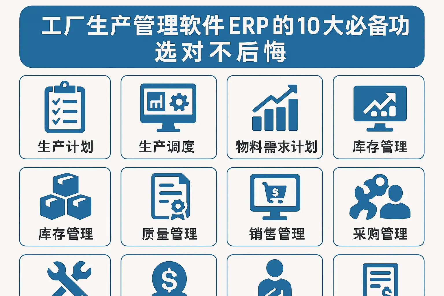 二、工厂生产管理软件ERP必备功能清单(模块×能力×验收指标×常见坑)
