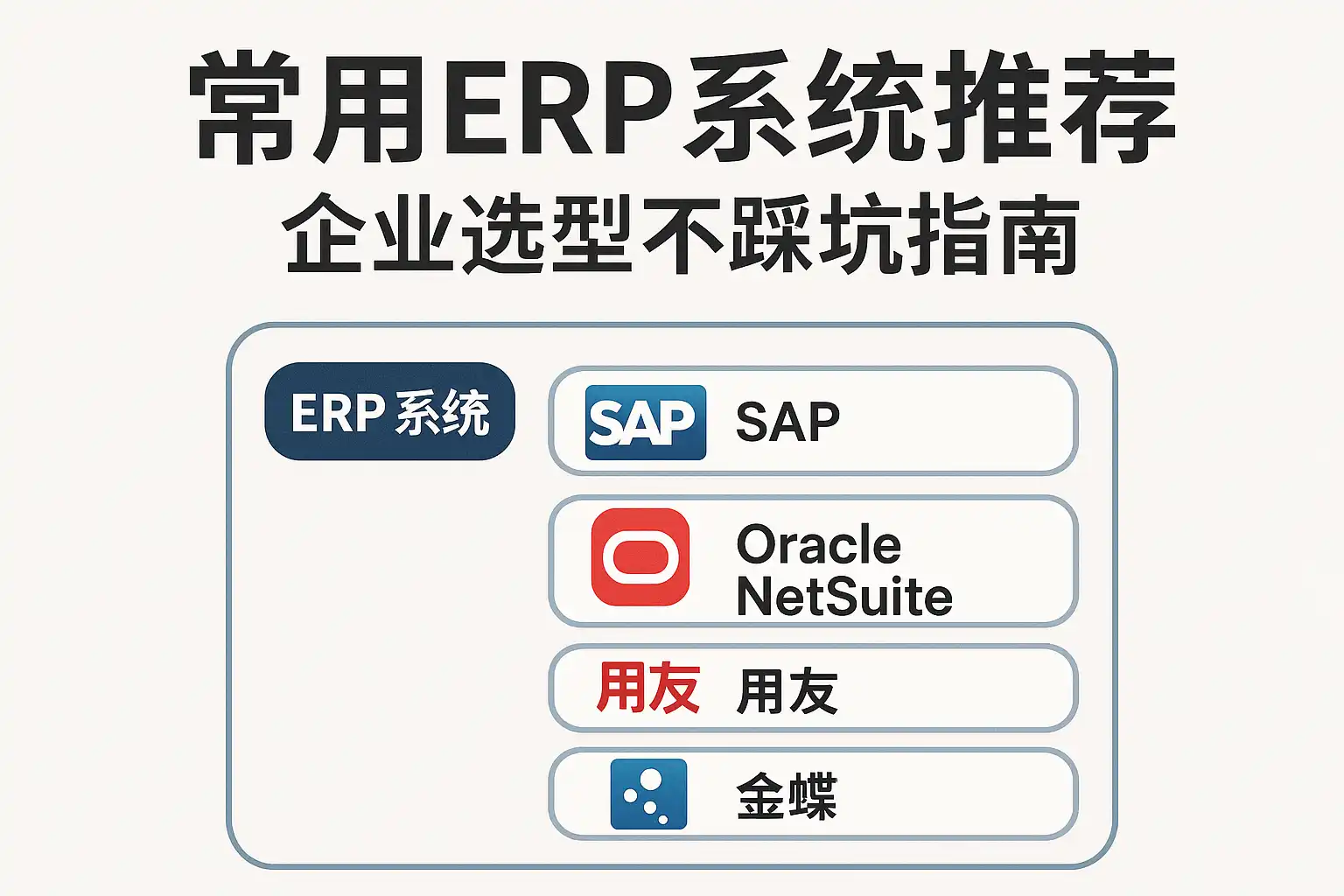 - 用友ERP:国内领先,适合中国市场,覆盖制造与服务业。