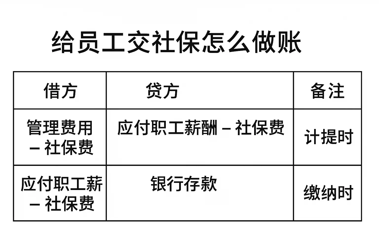 通过上述方法,公司能准确反映员工社保成本及缴纳情况,符合《企业会计准则》的要求。</div></div><div class="faq"><div class="q">企业给员工交社保有哪些相关税务处理?</div><div class="subq">我了解到企业为员工缴纳的社保不仅涉及会计核算,还有税务方面的要求。我想知道在给员工交社保时,企业需要注意哪些税务处理事项?</div><div class="a">企业为员工缴纳的社会保险费属于企业经营成本的一部分,可以在税前扣除,但需符合《税法》相关规定。具体税务处理要点包括: