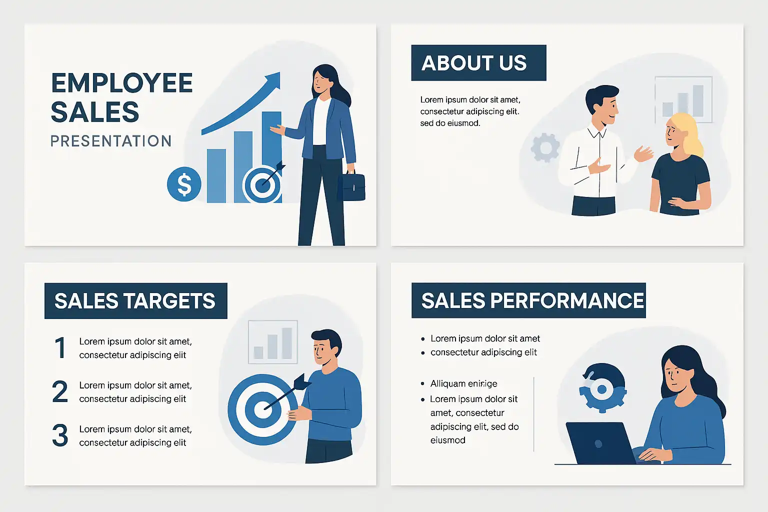 员工销售PPT模板的关键元素包括: