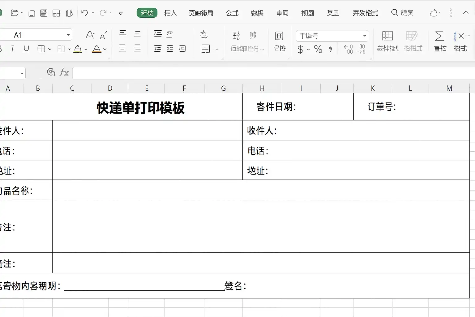 在制作Excel快递单模板前,应首先明确所需包含的基本信息,并规划整体布局。常见快递单通常包括以下栏目: