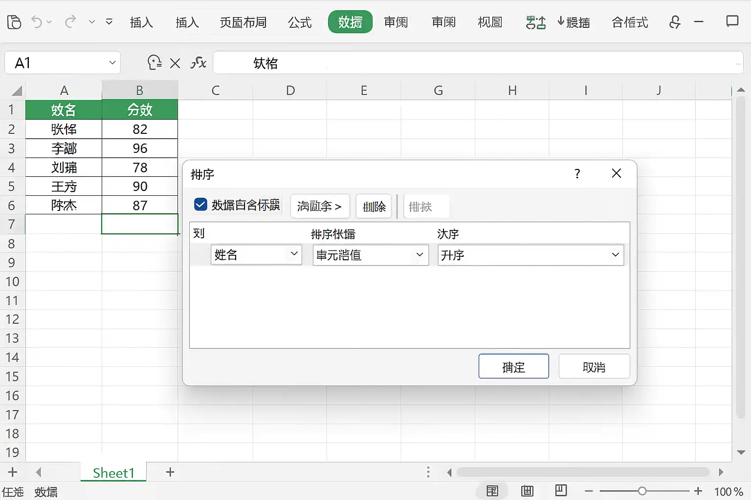 对于大多数用户来说,通过菜单栏提供的“升序”、“降序”命令即可快速完成基础的数据排列。具体操作如下:
