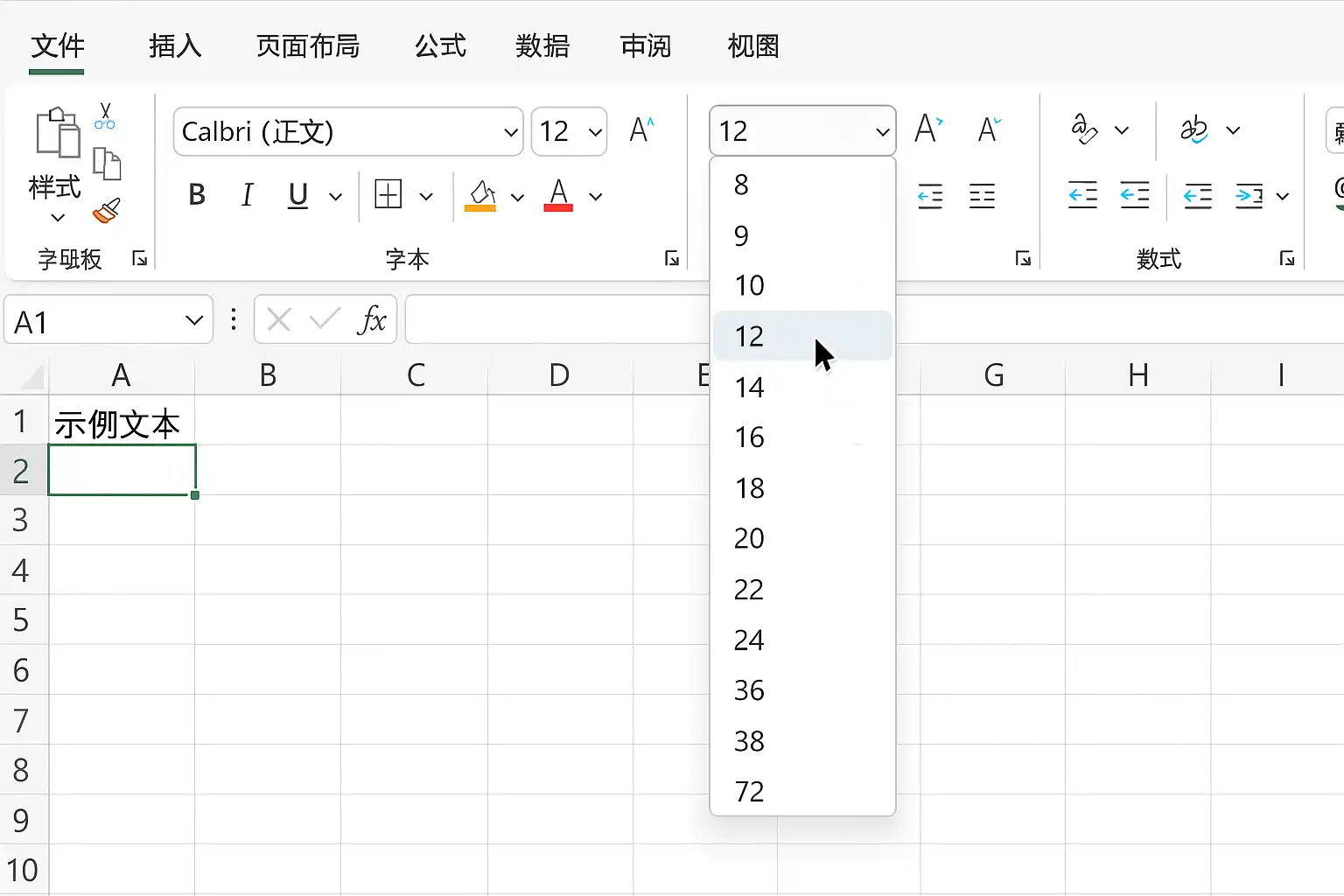 案例说明:如果你想将A1单元格中的文字字体调整为16号,只需选中A1,点击字体大小下拉框选择16即可。