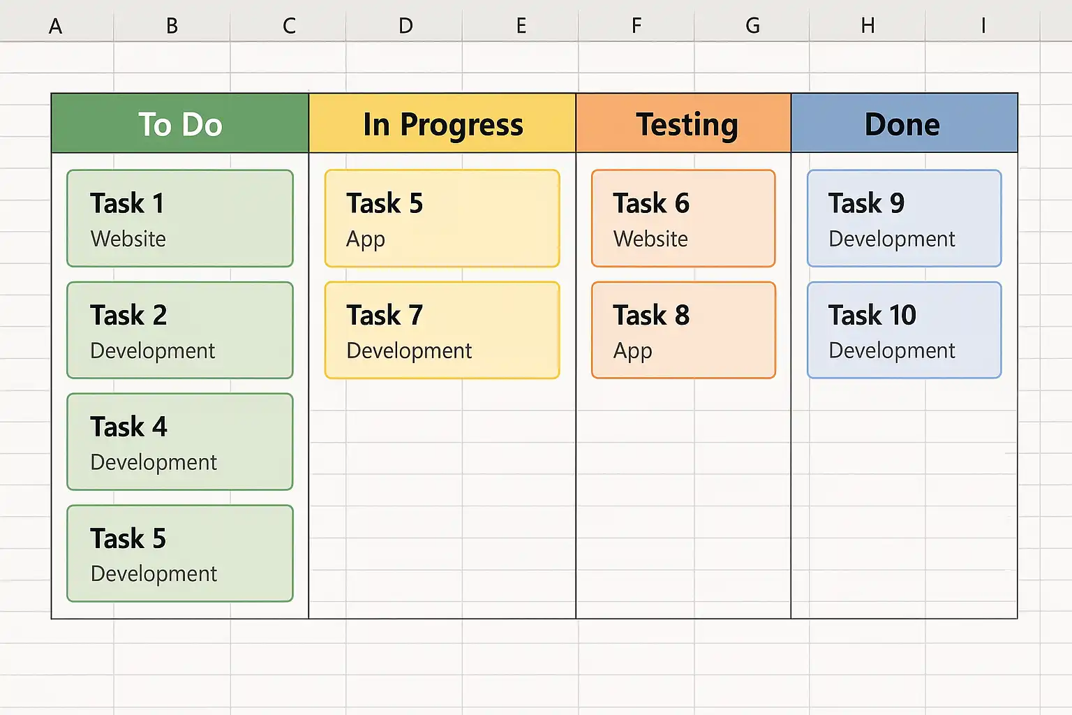 - 结构清晰:通过行列标签组织任务信息。