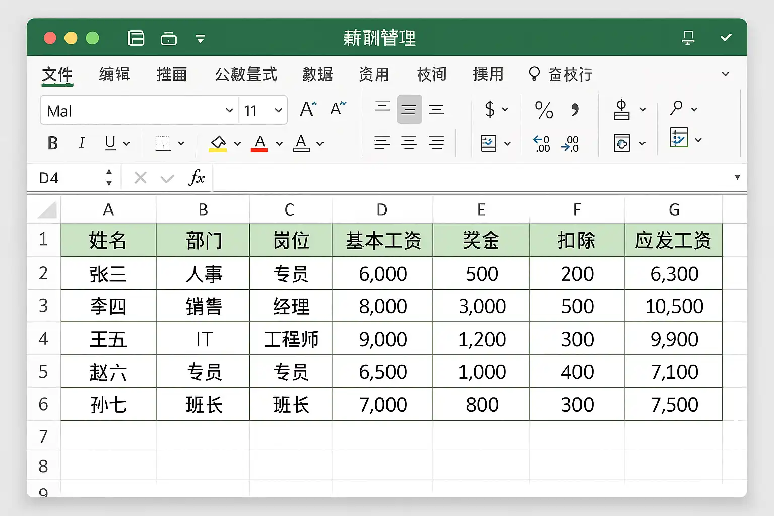 - 支持任意字段添加,如员工编号、岗位类别、新增补贴项等。