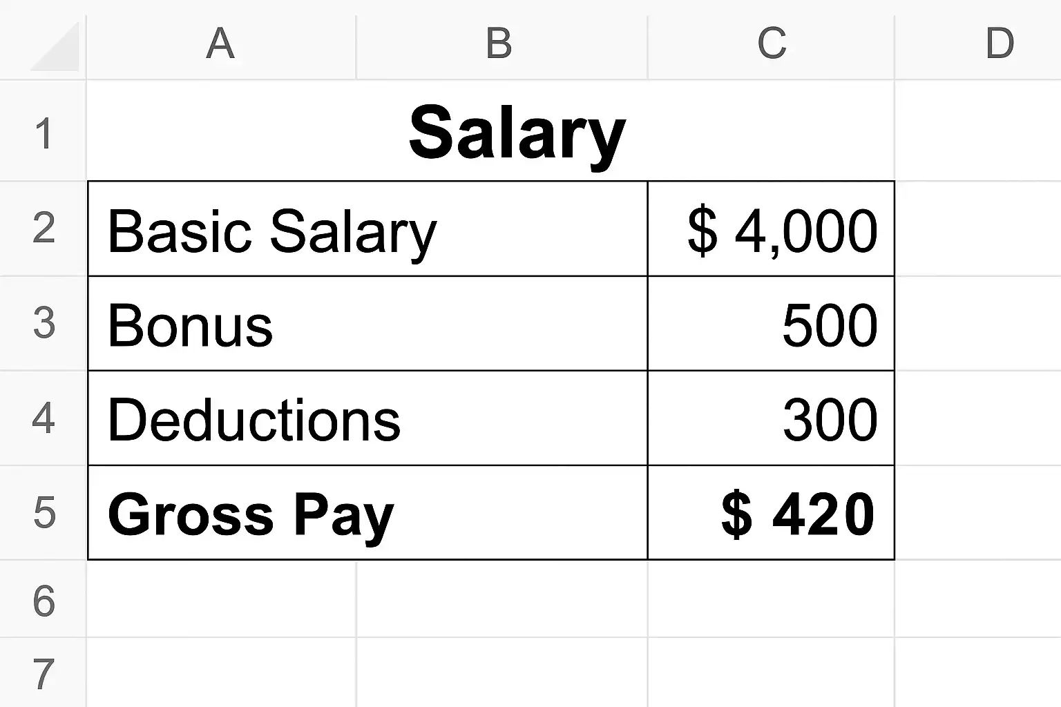 | SUM() | 汇总多项金额 | =SUM(B2:D2)求某员工所有收入合计 |